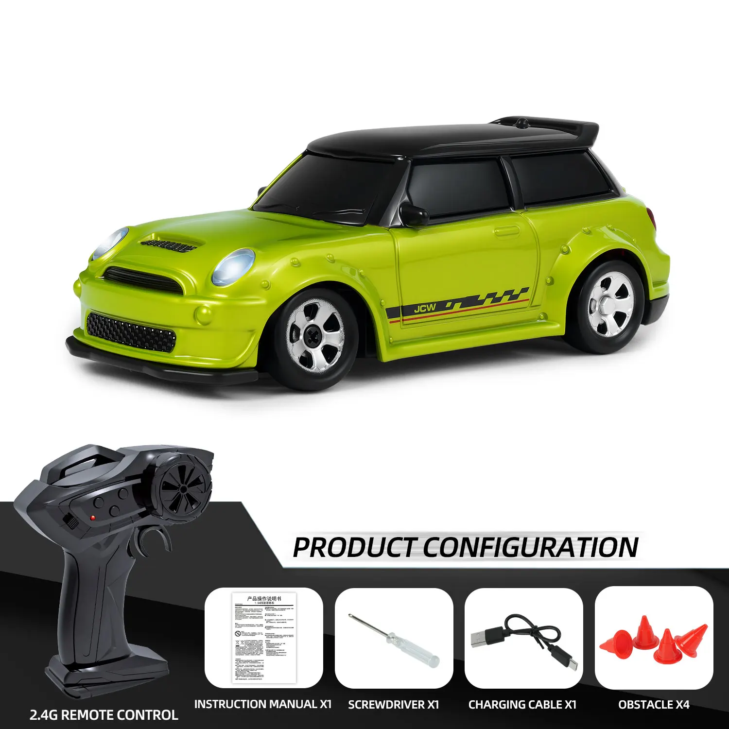 - This mini racing drift car is built with a durable metal and plastic body, offering resilience and realistic aesthetics suitable for intense stunts and high-speed racing experiences.