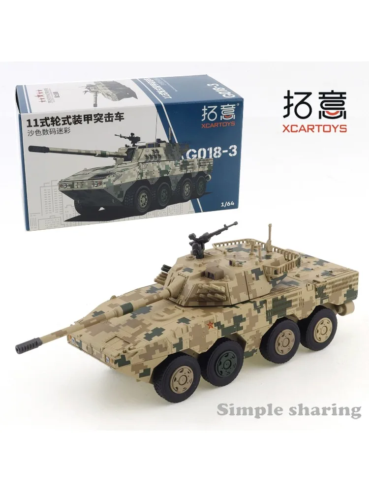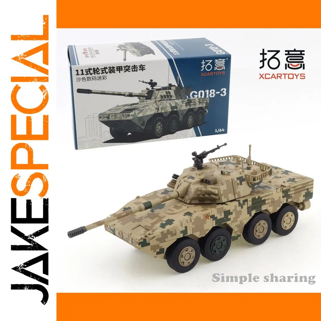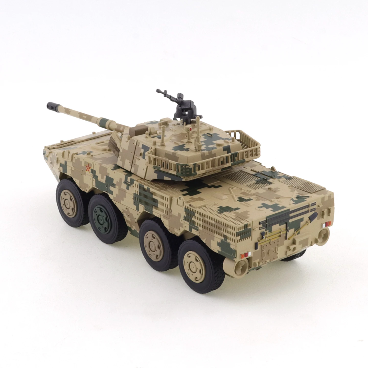 Experience the commanding presence of this 1:64 scale diecast armored assault vehicle, crafted from durable alloy with an impressive 11-wheel configuration. Finished in a realistic desert sand digital camouflage pattern accented by darker brown and green details, it features angular, robust bodywork with detailed armor plating, flat broad panels, and finely molded panel lines. The vehicle’s design highlights include large black rubber off-road tires, a turret mounted with an autocannon, and authentic military details like headlights, antennas, hatches, and communication equipment. Perfect for display or collection, this non-electronic model is suitable for ages 14 and above, offering a high-tech, tactical aesthetic that captures the essence of modern military engineering.