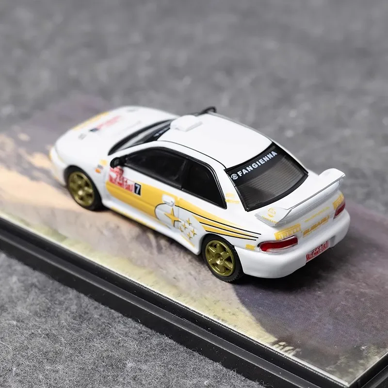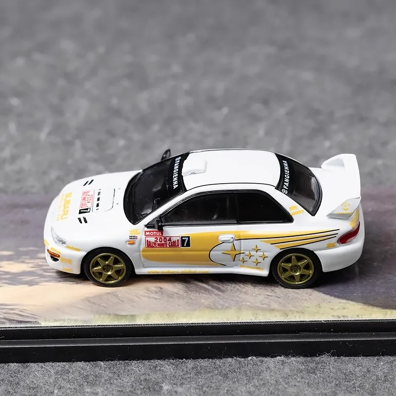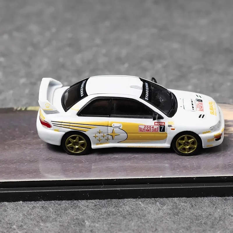 - This 1/64 scale Subaru WRC model is made from high-quality alloy, metal, plastic, and rubber, offering durability and fine detailing for passionate collectors and enthusiasts. It measures approximately 1 inch in length.