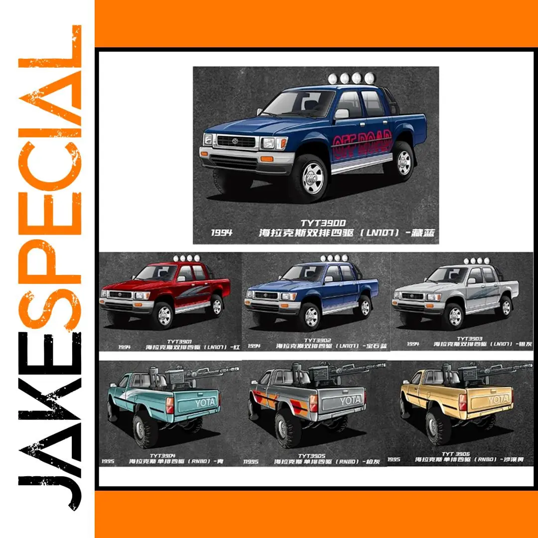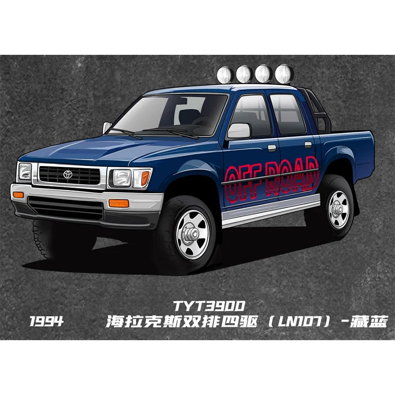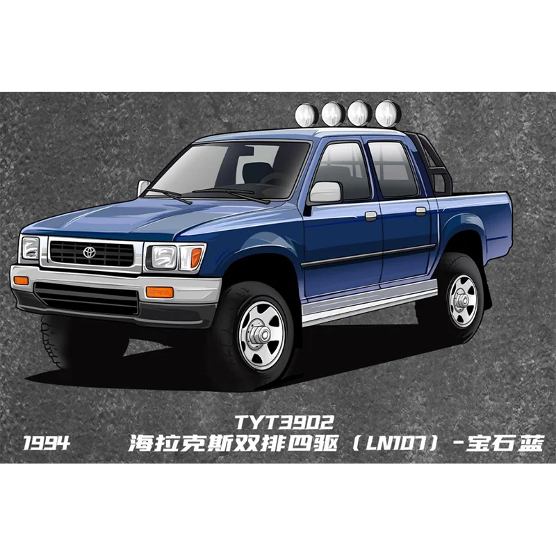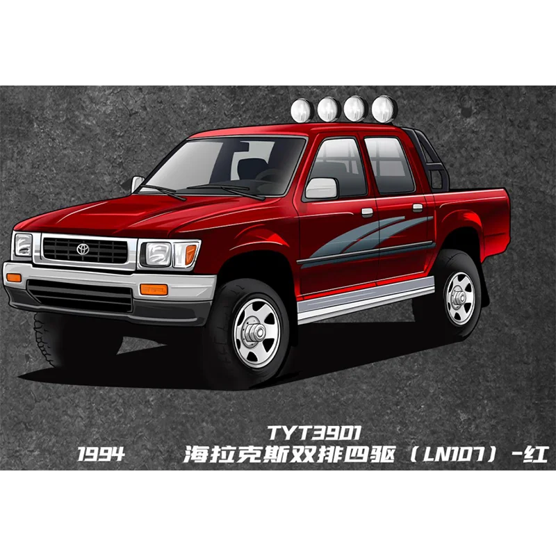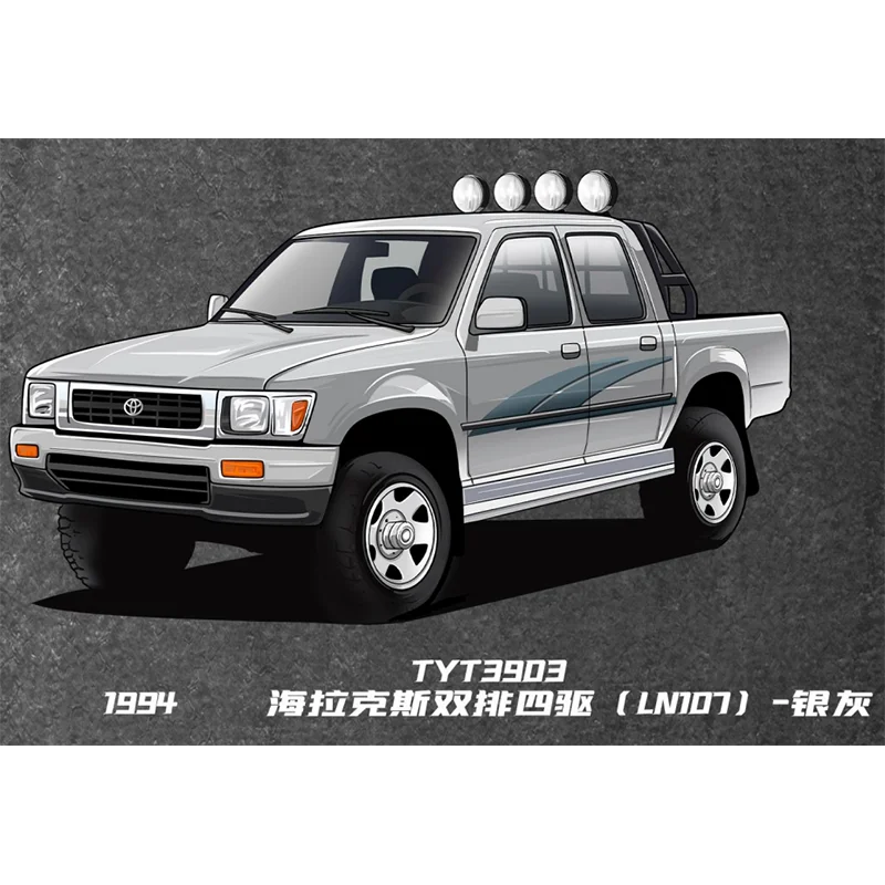 - This precise diecast alloy model accurately depicts the 1994-1995 Hilux LN107/RN80 series, emphasizing rugged off-road aesthetics with a detailed grille, headlights, and auxiliary lights for realism.