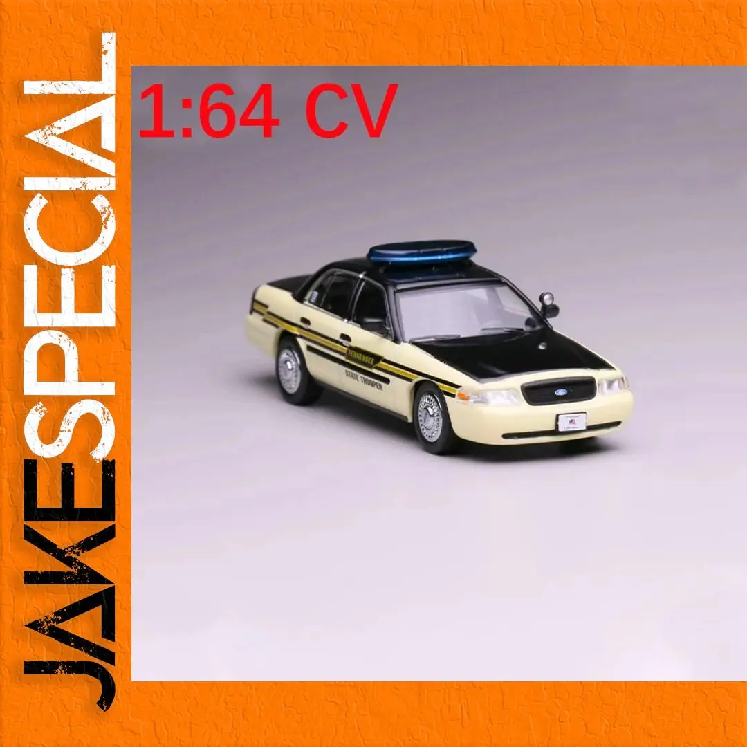 This 1/64 scale model of the Victoria Crown CV is a stunning collectible that combines intricate design with vibrant aesthetics. Crafted from durable alloy, this diecast model features a sophisticated two-tone black and cream color scheme, emphasizing its classic police vehicle appearance. The detailed front showcases a prominent brand logo on the grille along with realistic headlights. It sports black horizontal stripes with “Tennessee STATE TROOPER” text and includes a blue light bar on the roof, enhancing its authenticity. Designed for static display, it requires no batteries and exhibits vintage charm perfect for display or gifting.