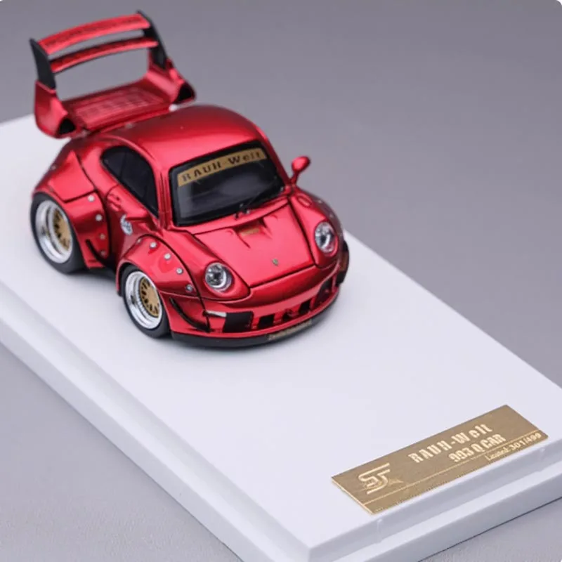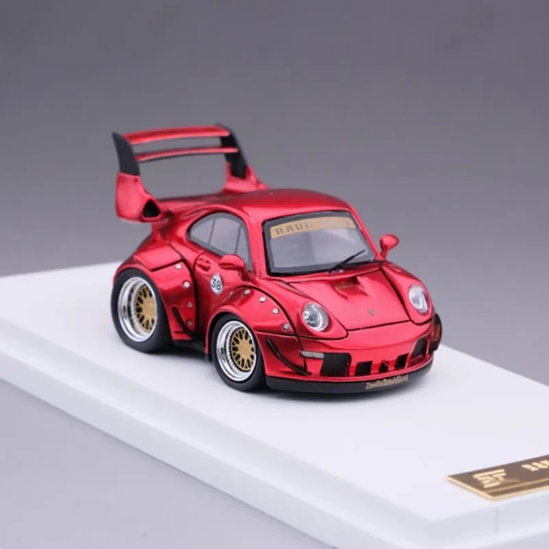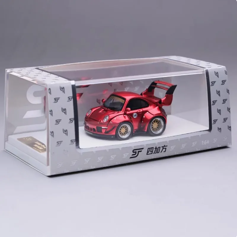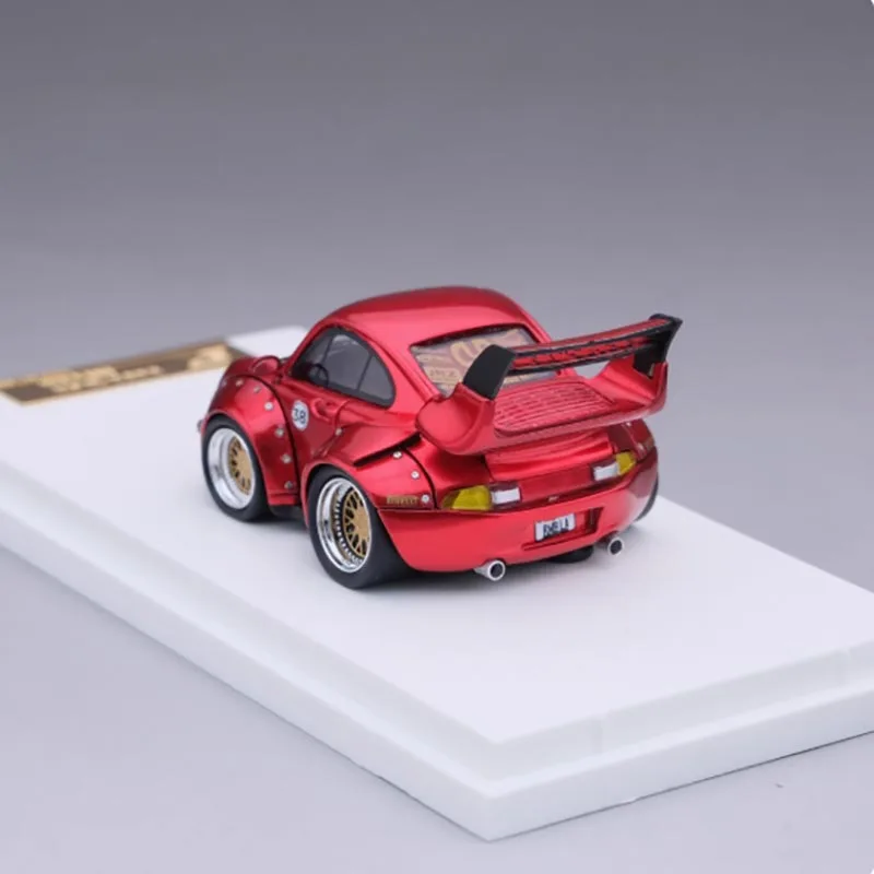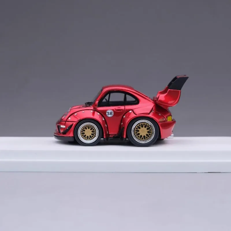 Introducing the SJF 1/64 scale wide-body Firebird resin model, a striking collectible designed for enthusiasts. This model boasts a vibrant glossy red finish, with smooth curves and pronounced fenders that emphasize its sporty muscle car styling. Equipped with sleek aftermarket-style wheels featuring a classic gold-tone multi-spoke design and prominent round headlights, it exudes an aggressive charm. Adorned with a racing number “38” decal and a large rear wing for added aerodynamics, this diecast model does not require batteries and is crafted from durable resin. Perfect for display or gifting, its intricate design makes it a must-have for any collector.