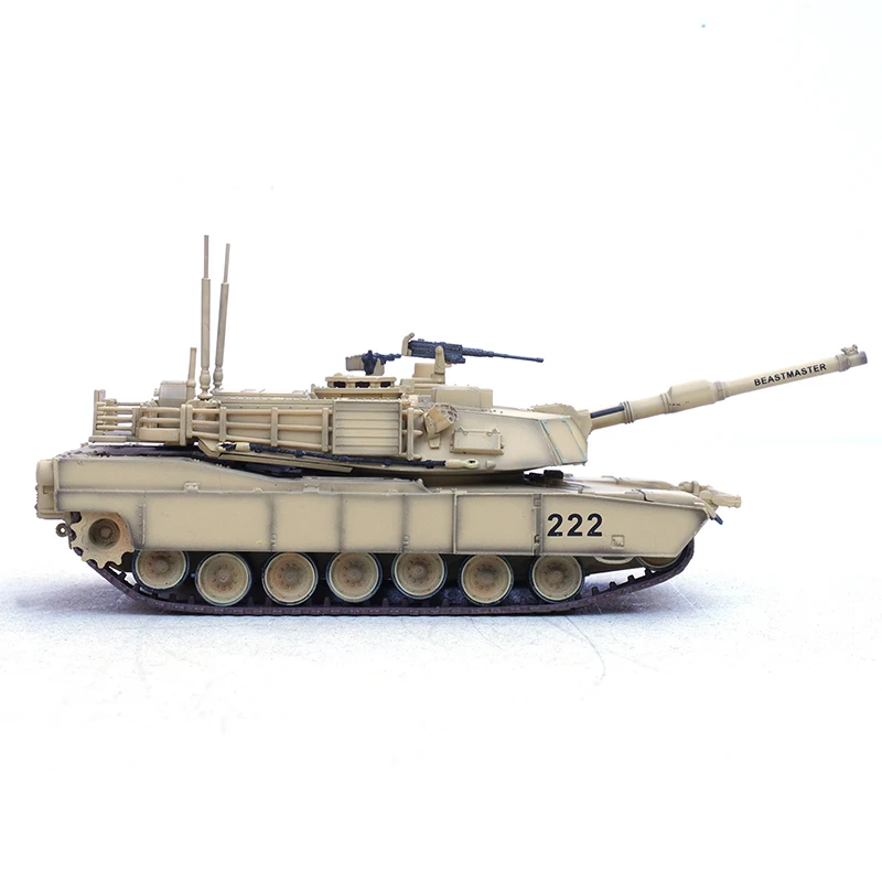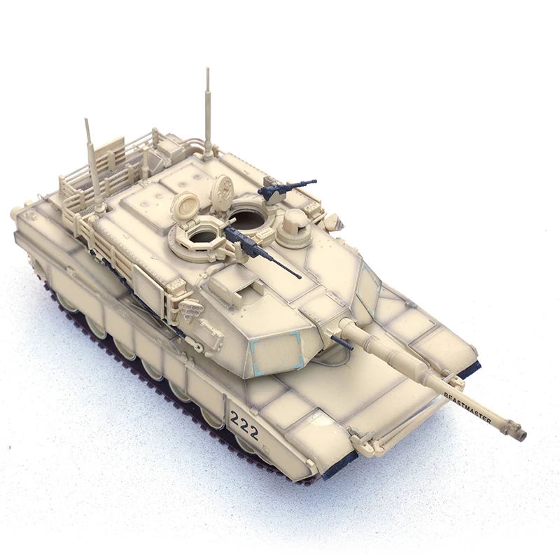 Experience the pride and craftsmanship of this exquisite miniature replica of the US M1A2 SEP main battle tank. Perfect for collectors and enthusiasts, this finely detailed model captures the essence of the formidable vehicle with its desert tan camouflage and intricate surface features. Its realistic panel lines, textured armor, and authentic decals, like “222” and “BEASTMASTER,” bring the tank to life for display purposes. The turret, main barrel, and side details have been carefully crafted to reflect the rugged military appearance of the original. Made of durable plastic, this static model showcases superb craftsmanship, making it an eye-catching decor piece or a thoughtful gift. Visualize adding this commanding military icon to your collection and relishing its detailed realism.