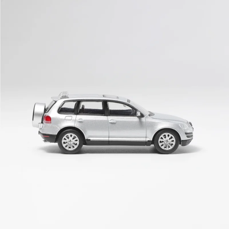 Experience the craftsmanship of this detailed 1/64 scale alloy and plastic model of a Volkswagen Touareg, featuring a spare tire on the rear and realistic molded details. Available in four elegant colors—Silver, Brown, Blue, and an additional shade—this diecast collectible showcases a polished, streamlined body with fine alloy rims, black tires with treads, transparent windows revealing an intricate interior, and roof rails. Designed purely for static display, it contains no electrical components or batteries, making it a perfect addition for adult collectors and enthusiasts. Hand-measured with minor deviations, this model emphasizes authenticity, durability, and craftsmanship, offering a sophisticated showcase piece.