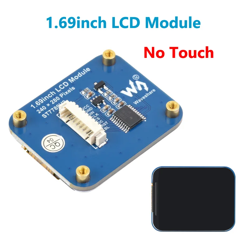 Experience vibrant visuals and touch responsiveness with this 1.69-inch LCD display module, designed to elevate your projects seamlessly. Whether you're building a custom interface or an innovative gadget, this module offers stunning 240×280 resolution and 262K colors, bringing digital metrics and designs to life. Its sleek, polished finish and slim profile make it a perfect fit for compact setups. The non-touch version utilizes an SPI interface to simplify connectivity with Raspberry Pi and STM32 controllers, minimizing IO pin use. The touch version, equipped with ST7789V2 driver and CST816T capacitive touch controller, supports both SPI and I2C, enhancing user interaction. Both variants operate on 3.3V or 5V power, including an onboard voltage translator for versatile compatibility. Elevate your projects with this high-quality, easy-to-use display module built for precision and clarity.