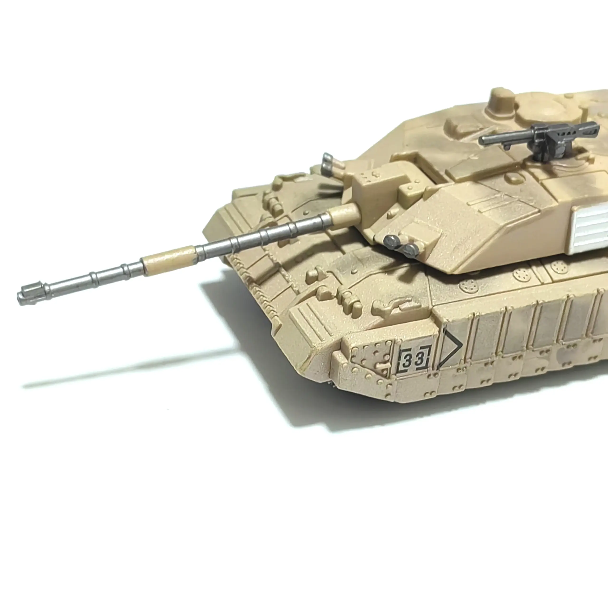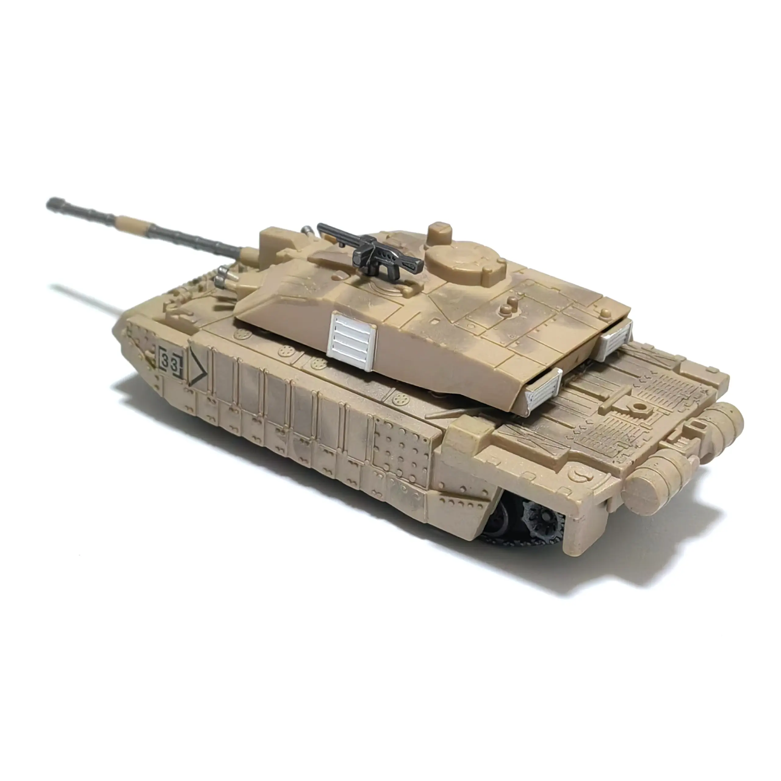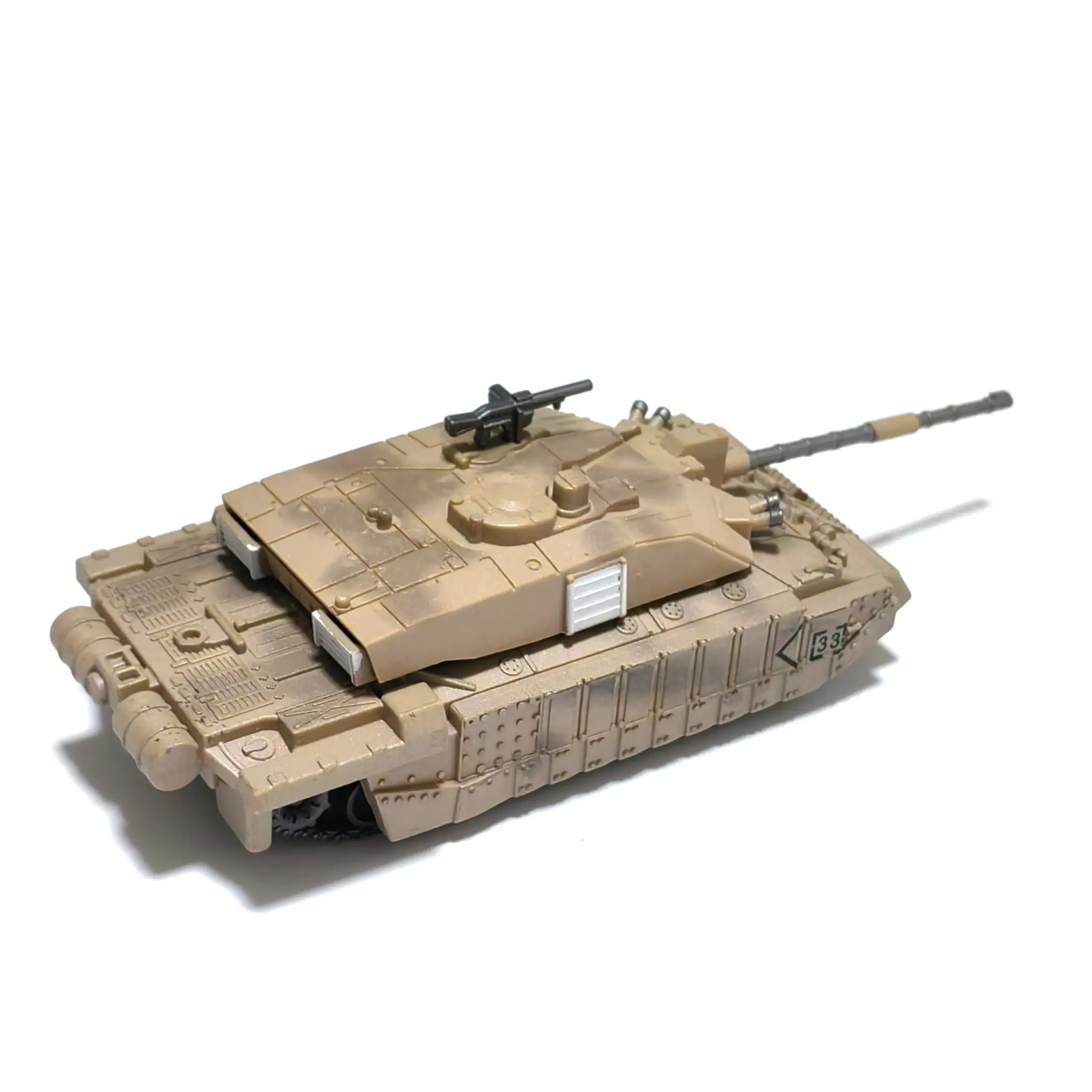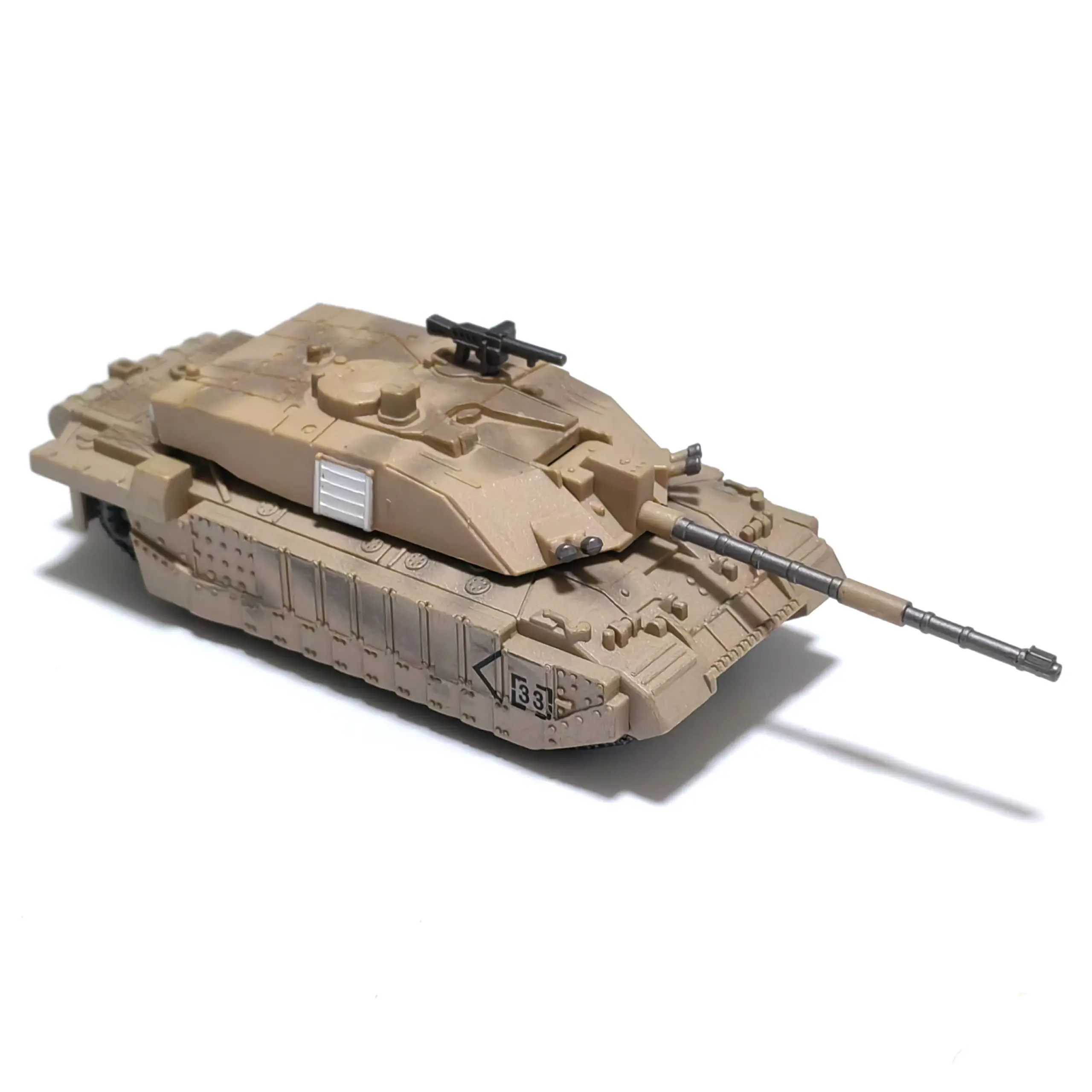 Immerse yourself in the world of military modeling with this highly detailed 1/72 scale Challenger main battle tank plastic kit. Perfect for hobbyists aged 14 and older, it offers a realistic and intricate representation of modern military design. The model's sharp, angular contours and textured surface mimic real tank features, including tiny rivets, hatches, vents, sensors, and track links. The beige or tan color palette evokes desert camouflage, enhancing its visual authenticity. With its finely crafted components, you can enjoy a satisfying DIY assembly experience. Once completed, it becomes an impressive display piece that captures the rugged, sophisticated look of the formidable Challenger tank. This kit invites you to showcase your craftsmanship and patriotism.