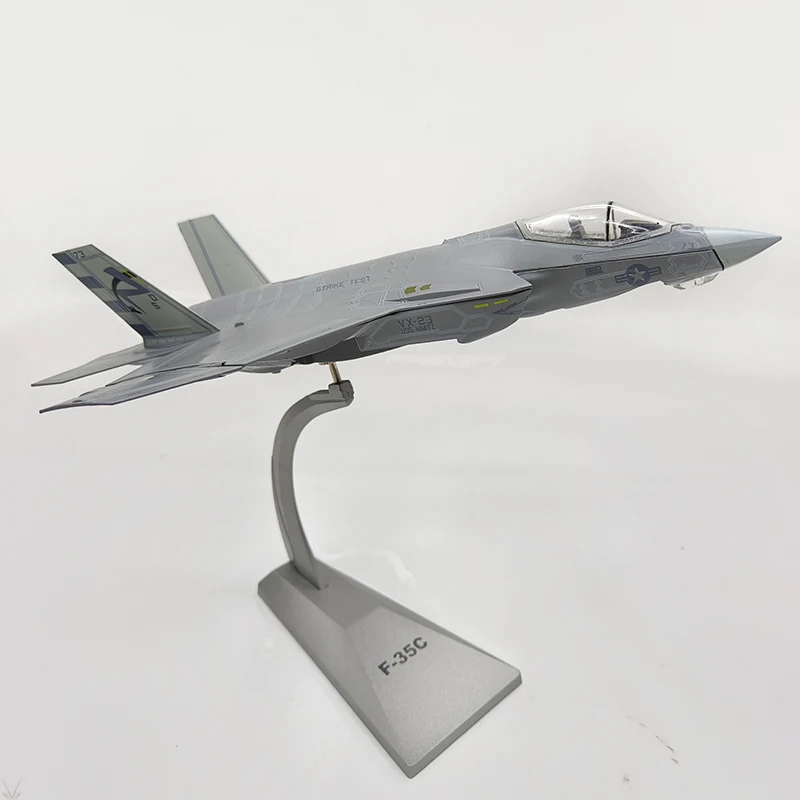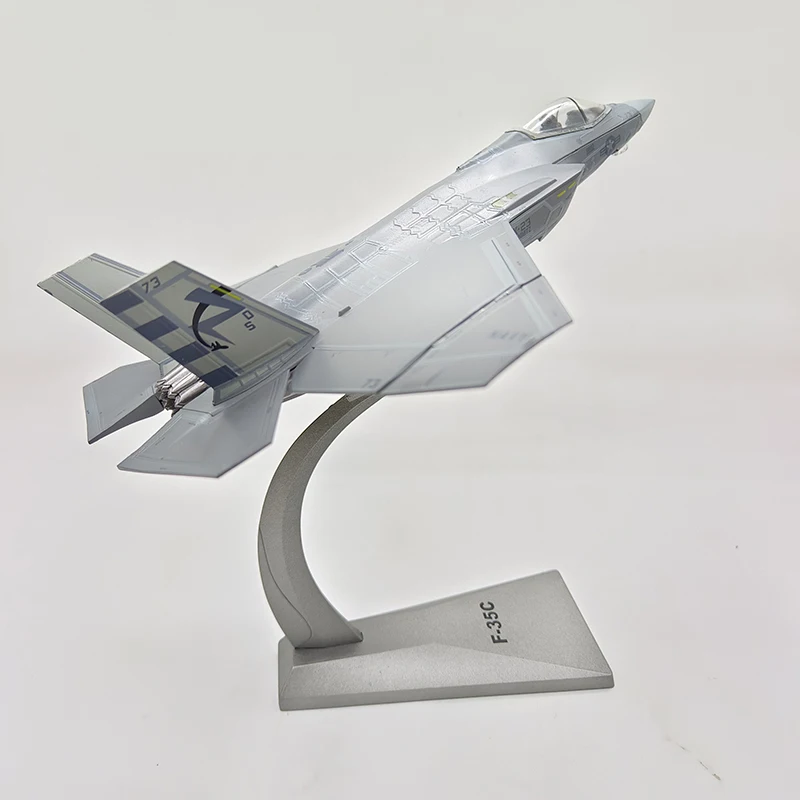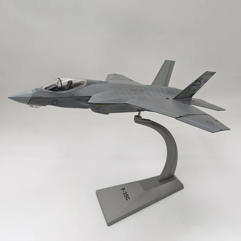 - The airplane features a sleek metallic sheen in shades of light gray and silver, accurately reflecting the camouflage and color scheme of the real F-35C aircraft.