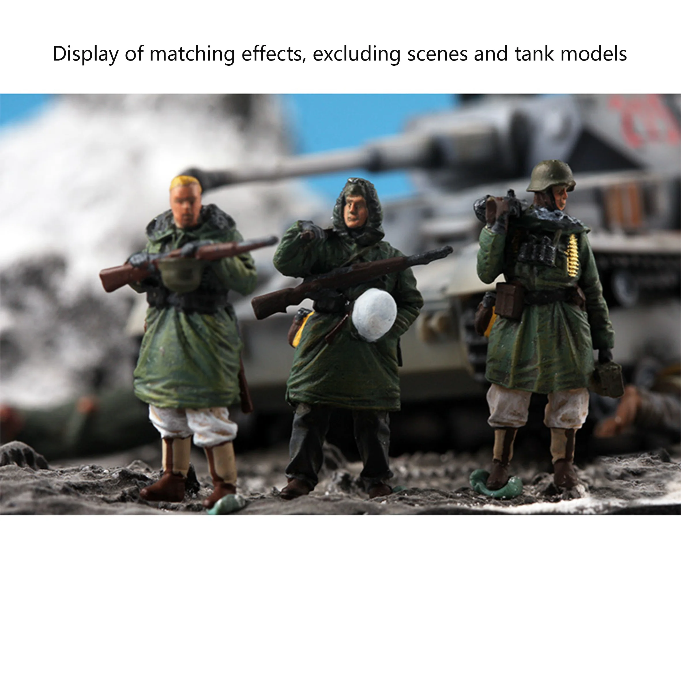 - Each figurine is about 3cm tall, dressed in winter camouflage uniforms with authentic green overcoats and white trousers for a winter combat look.
