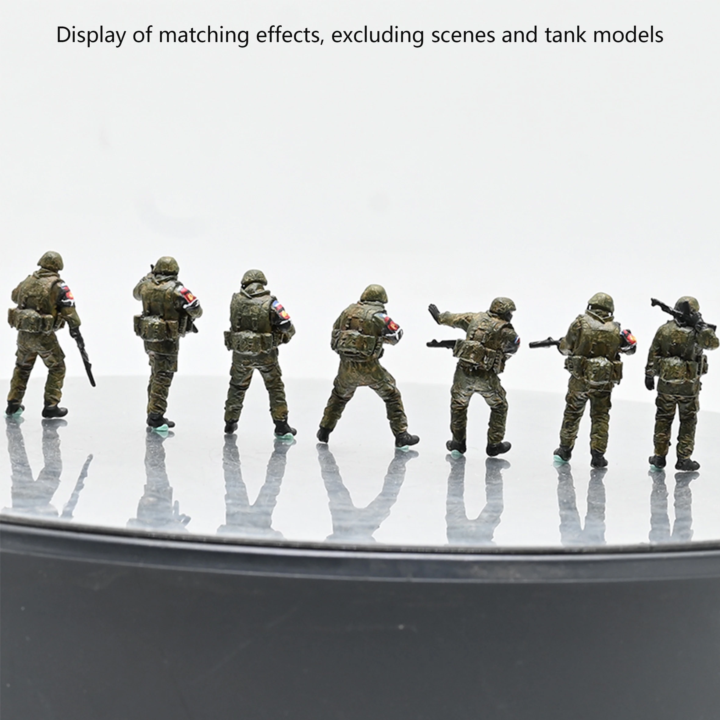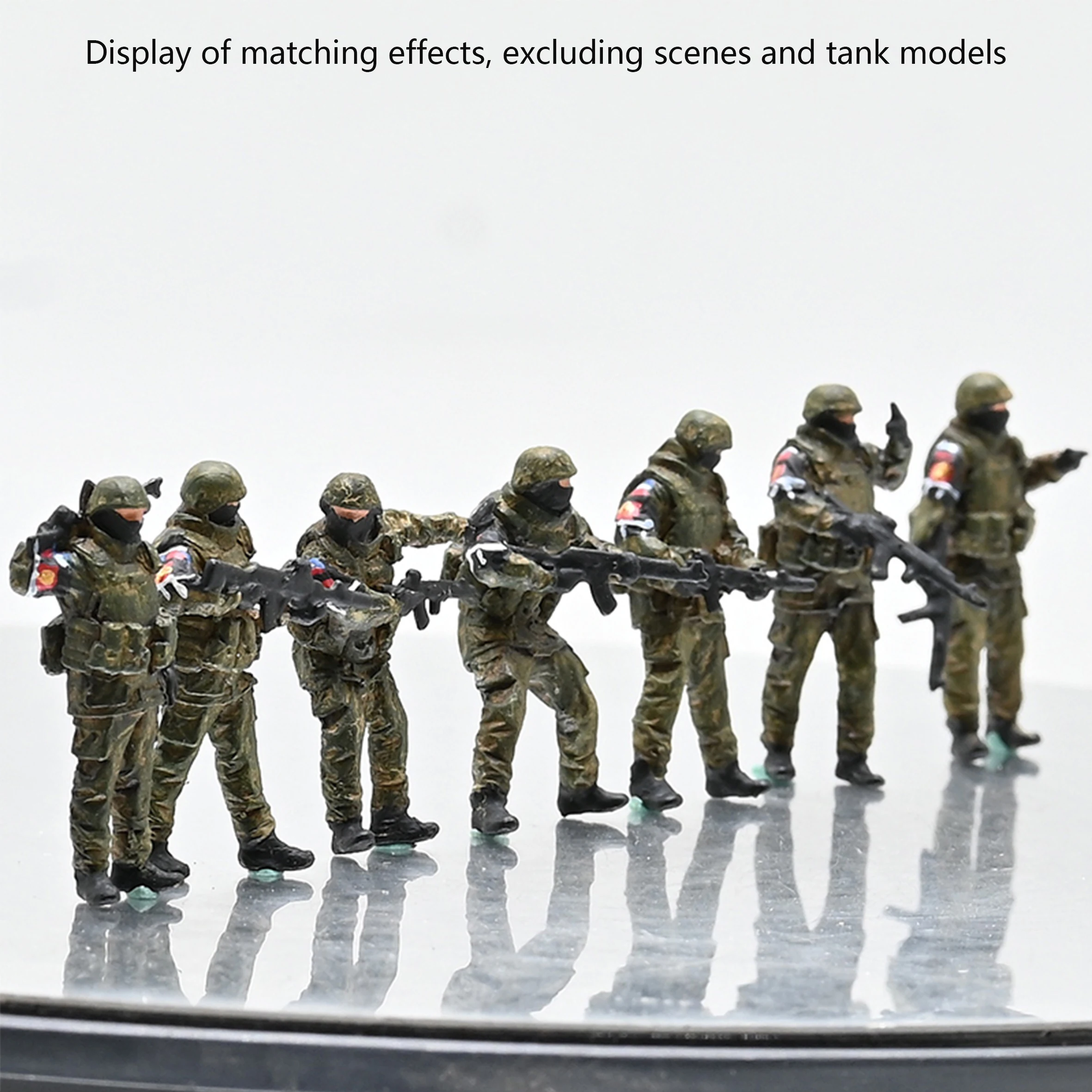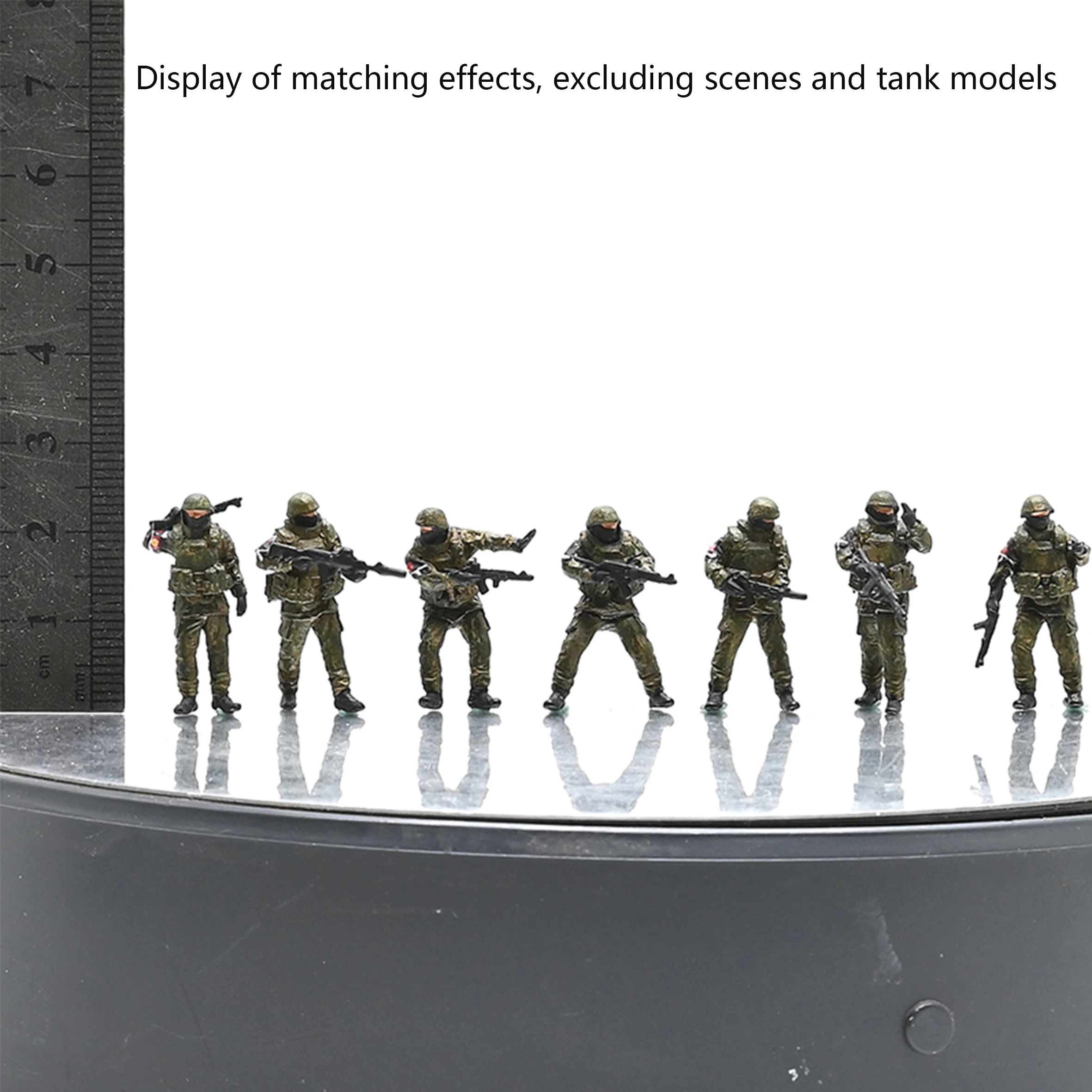 - This set includes 7 painted soldiers with realistic camouflage uniforms, helmets, weapons, and tactical gear, providing a complete winter inspection unit with varied poses and actions.