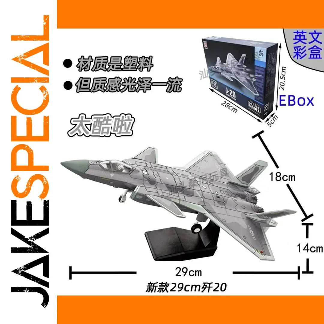 - Features intricately designed surface details such as panel lines, markings, and sharp angular accents that mimic the real J-20 fighter jet’s modern aesthetic.