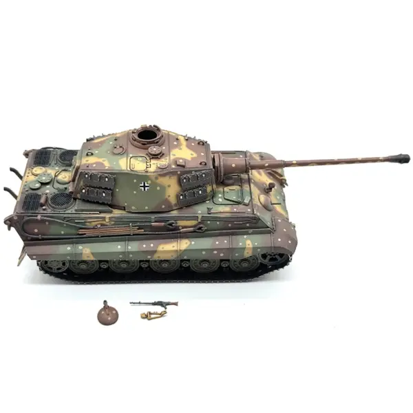 Bring history to life with this detailed 1/72 scale King Tiger tank model, a perfect collectible for enthusiasts and serious collectors. Crafted from durable PVC plastic, this intricately designed ornament features authentic camouflage patterns, realistic details such as rivets, hatches, and well-defined tracks, showcasing the craftsmanship and historical accuracy. Its compact size makes it an ideal display piece to add depth and character to your collection. Please note, the model’s track cannot rotate, and it is fragile—best suited for display rather than play. Enhance your collection with this striking armor vehicle that captures the essence of WWII military engineering.