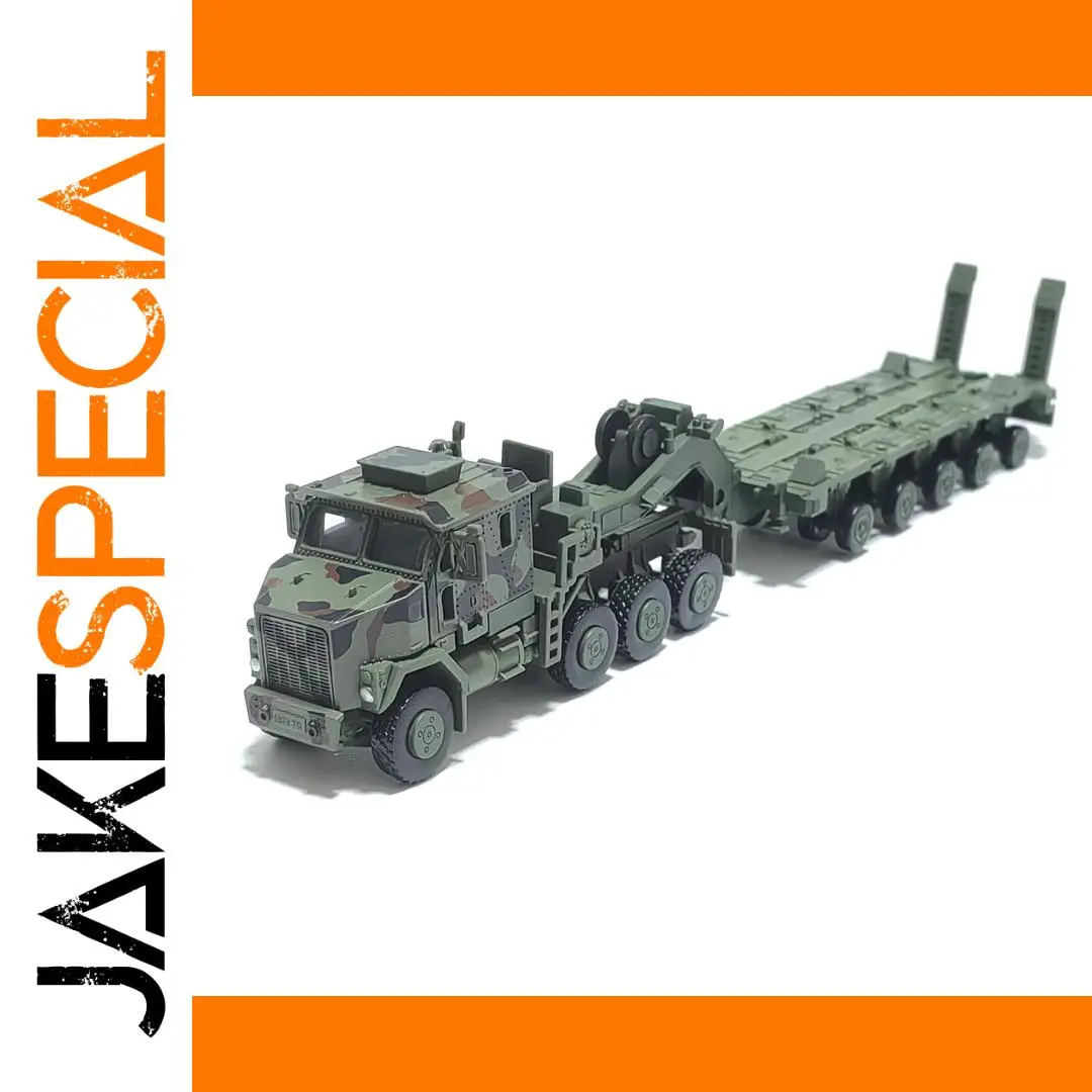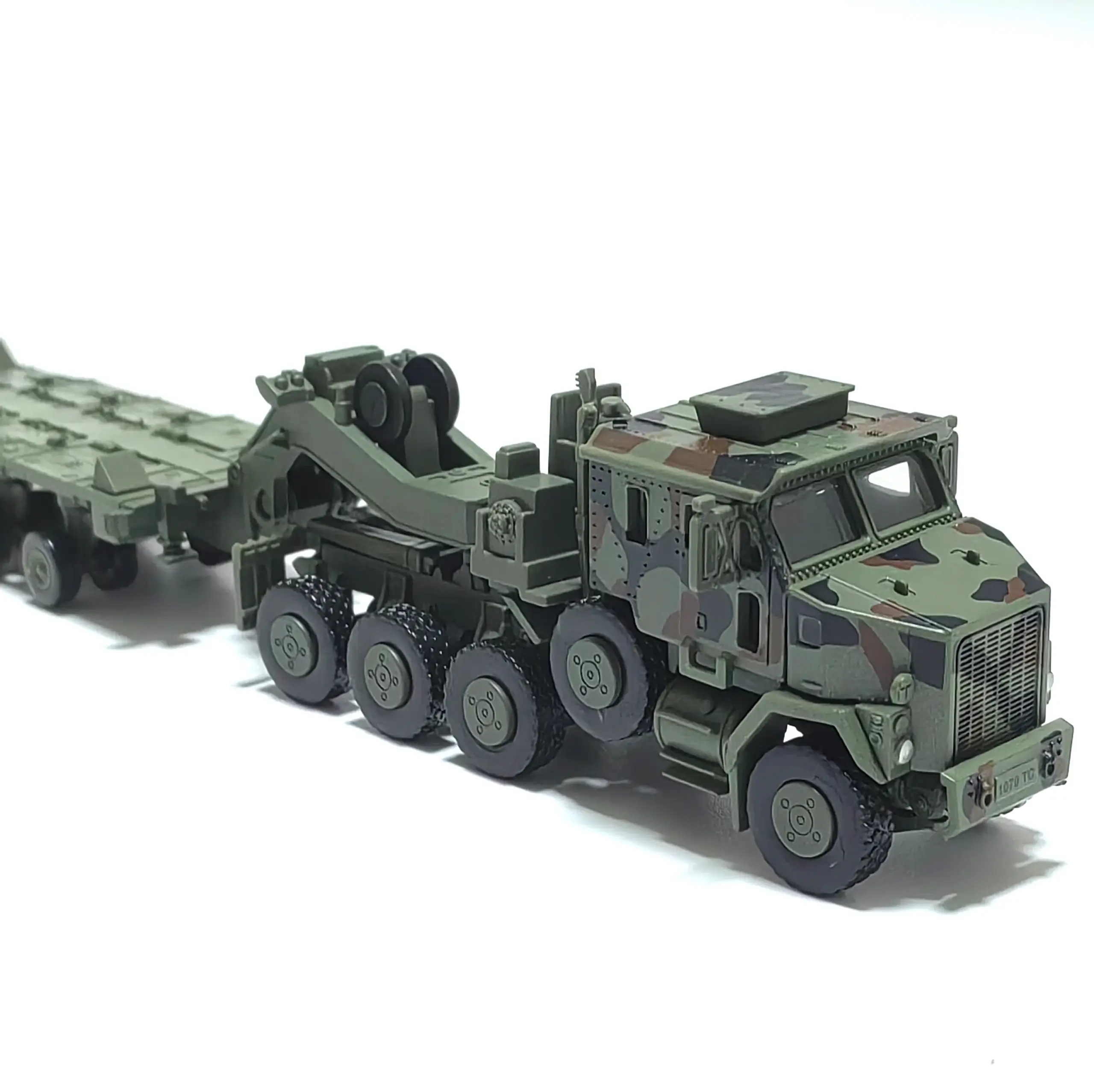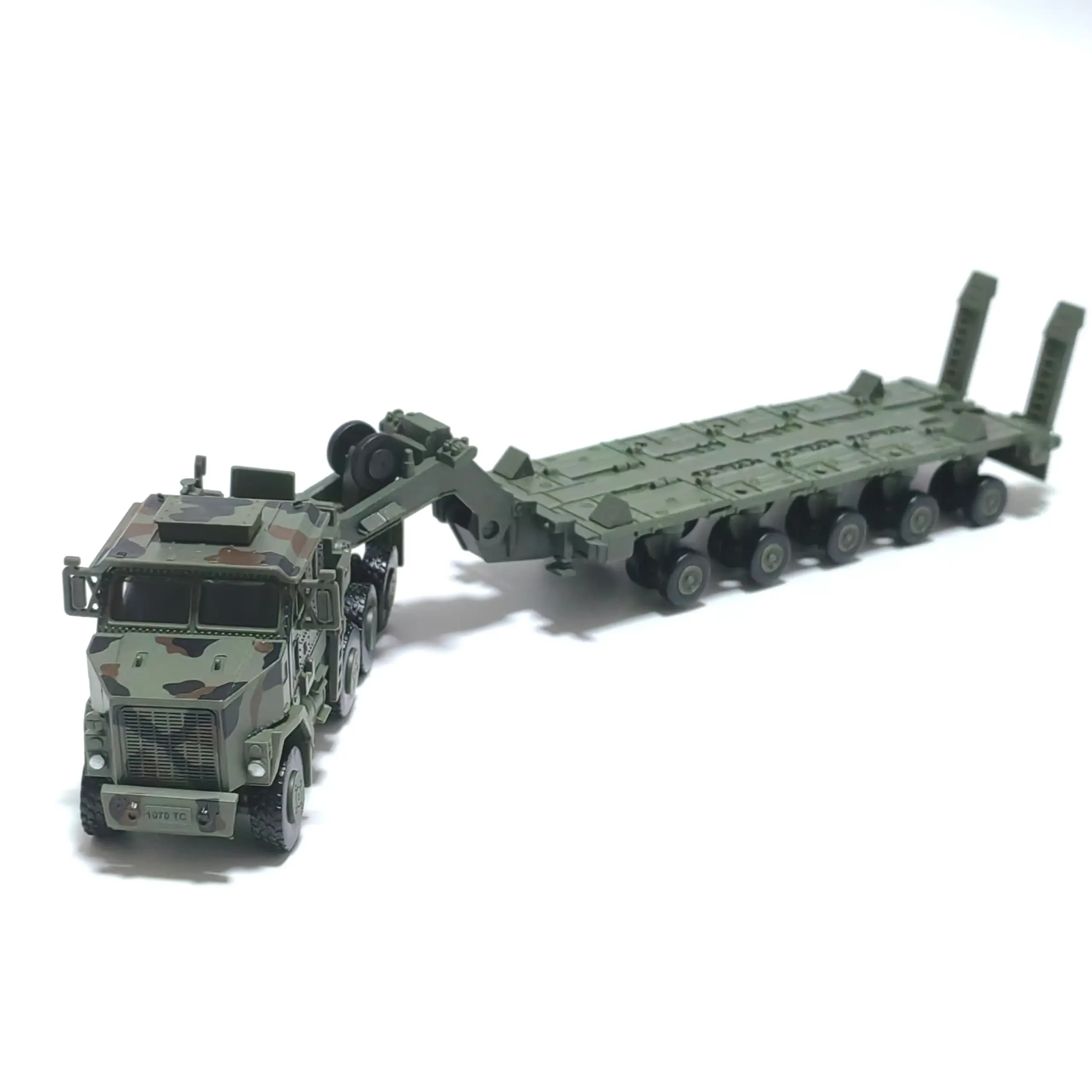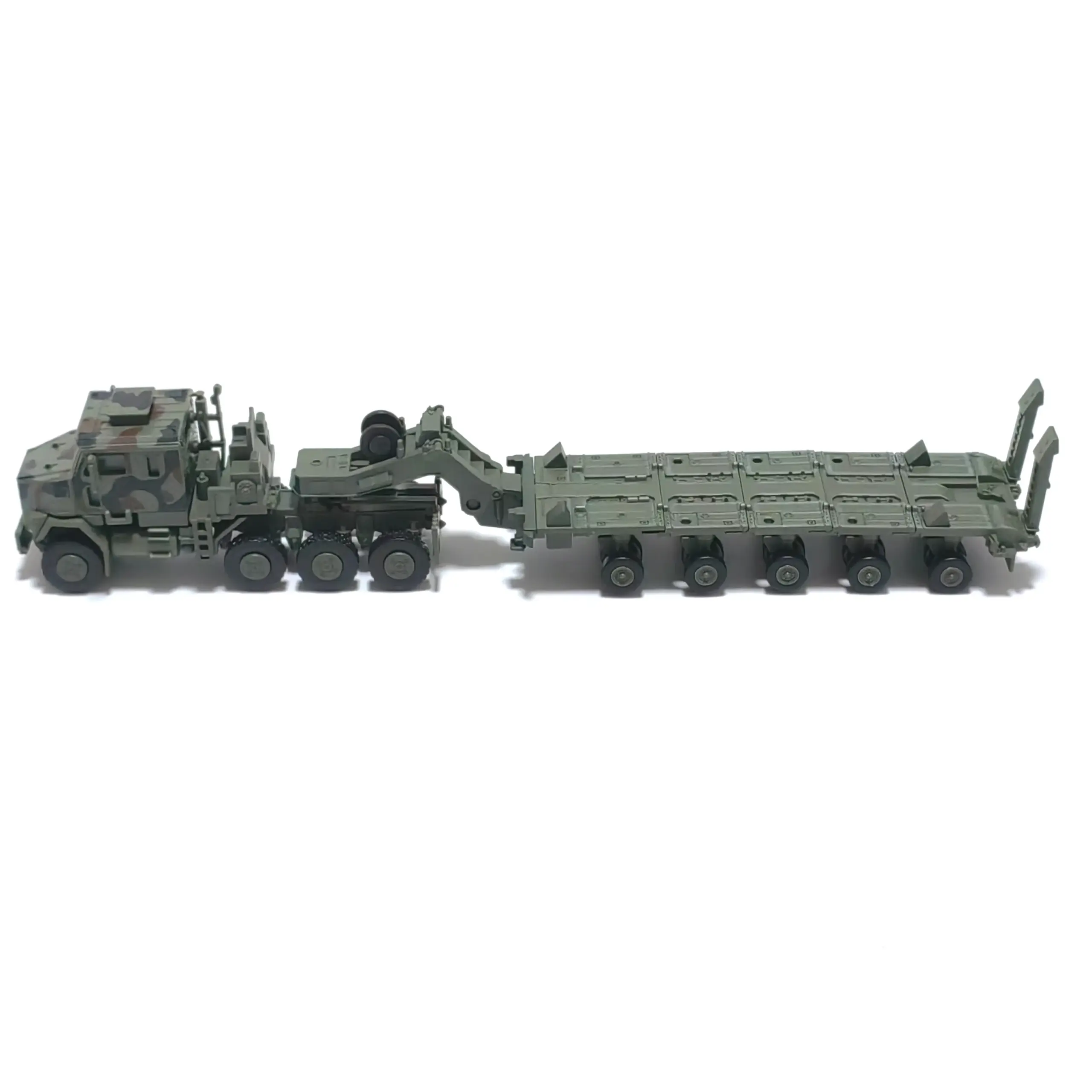 - The model showcases a multi-axle truck with a detailed open-top trailer, ideal for heavy military cargo display, with 60+ components precisely molded, including textured panels and support structures.