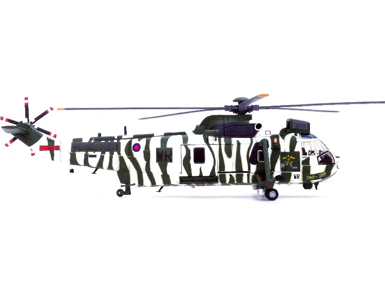 This exceptional 1/72 scale model of the Royal Navy WS-61 HC-4 helicopter is a must-have for collectors and aviation enthusiasts alike. Crafted with a diecast design using a blend of metal and plastic, it showcases a semi-alloy finish that enriches its realistic appearance. The model measures approximately 23 cm in length and has a rotor diameter of about 26 cm, making it a striking display piece. Its detailed cockpit with clear windows reveals a meticulously crafted interior. With a captivating camouflage pattern of green and white stripes, this helicopter model embodies military elegance that will enhance any collection.