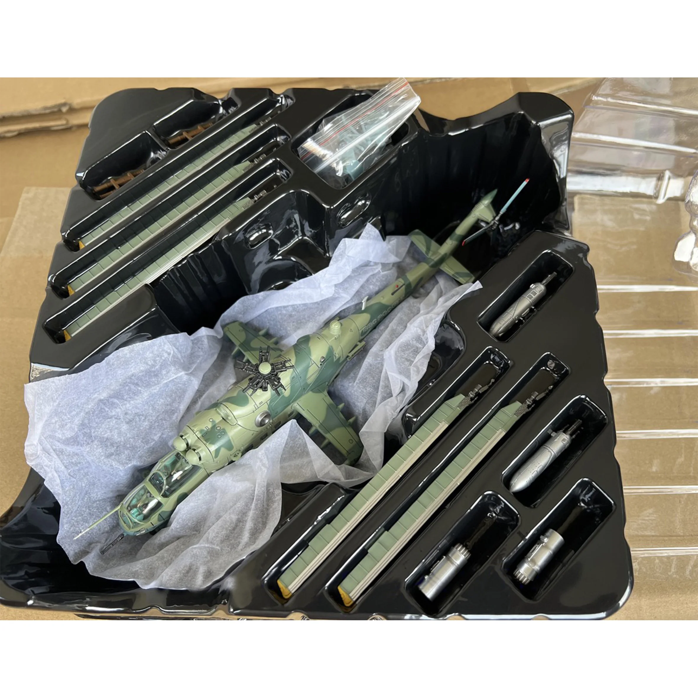 Step into the world of military aviation with this exquisite 1/72 scale model of the Russian MI-24V armed helicopter, model number 14005PE by Trumpeter. Crafted with precision, this model features a striking green camouflage color scheme that showcases various shades, making it both realistic and appealing. The sleek design is highlighted by detailed cockpit elements, a dynamic rotor system with four finely painted blades, and distinguishable features like access panels and small windows. Perfectly sized at 26 cm in length and a rotor diameter of 23 cm, it is a true collector’s item that will elevate your display.