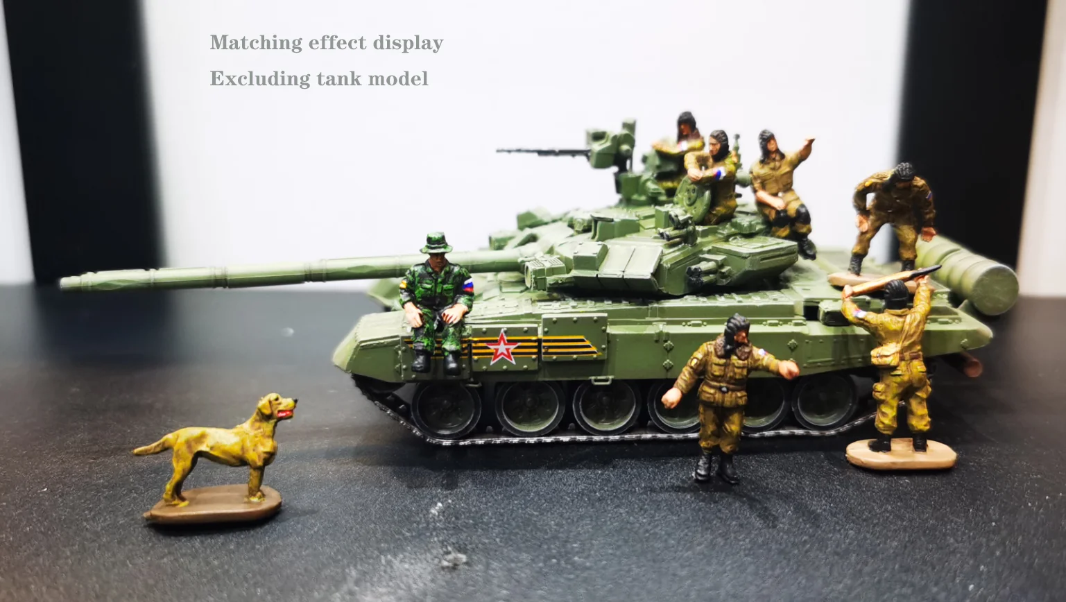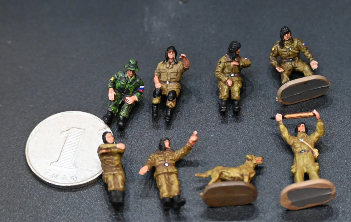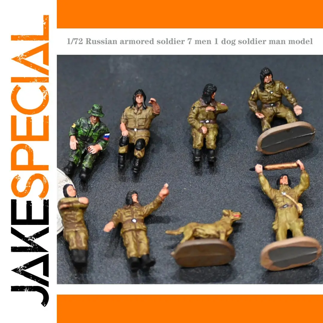 Enhance your military collection with this detailed 1/72 scale set of Russian armored soldiers and a loyal dog, perfect for creating realistic tabletop scenarios or dioramas. Featuring seven intricately painted PVC figures in various poses and uniforms, along with a lifelike dog companion, this set captures the resilience and diversity of soldiers in action. Designed for adult enthusiasts, each miniature measures approximately 3cm tall, with flat oval bases for easy positioning. Whether you’re a seasoned collector or an avid hobbyist, this set allows you to bring a touch of realism and dynamic storytelling to your displays.