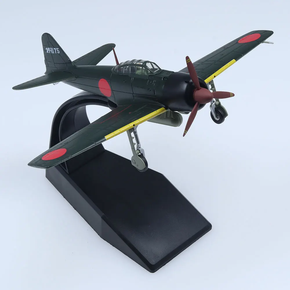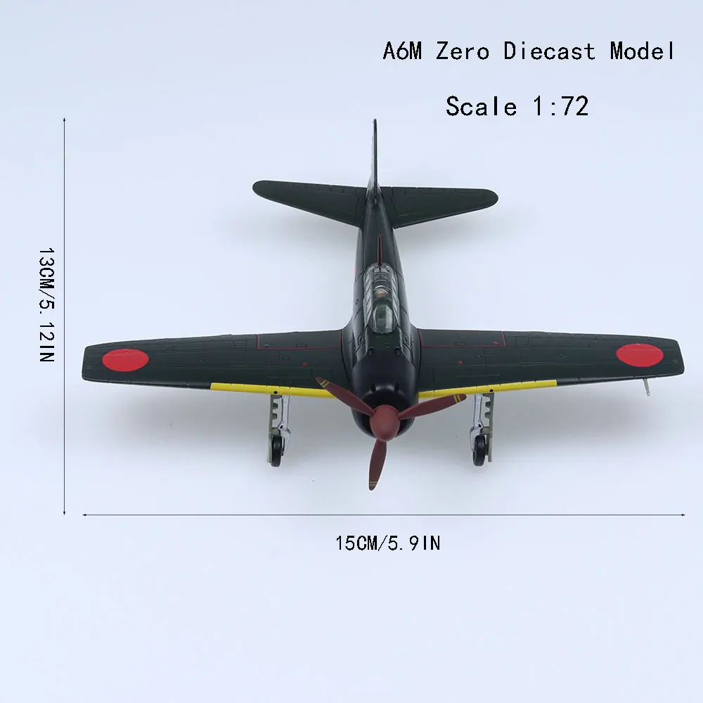 Bring history to life with this meticulously crafted 1/72 scale die-cast model of the Mitsubishi A6M ZERO fighter aircraft in a striking green finish. Measuring 17 cm in length, 17 cm wingspan, and 6 cm in height, and weighing around 300 grams, this static collectible showcases detailed features including a transparent cockpit canopy with visible framing, reddish-brown propeller blades with gold tips, and realistic Japanese Hinomaru insignia on the fuselage and wings. Made from alloy and plastic, it exemplifies precision craftsmanship and classic military design, making it an impressive display piece for enthusiasts and collectors seeking authenticity and excellence.