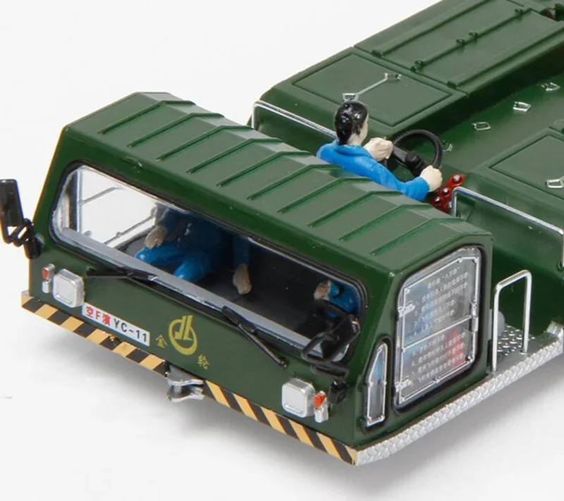 Step into the world of aviation ground support with this detailed diecast aircraft tractor at a perfect 1/72 scale. Crafted from alloy diecast metal with an ABS base, this model measures 21 cm in length, 11 cm in width, and 4 cm in height, offering a compact yet authentic representation. Its military green finish highlights the industrial design, complete with vent-like side details and a textured work surface on the top. The front features a clear rectangular windshield framed in white, with additional side windows and precise headlights. The bumper boasts black-and-yellow hazard stripes for added realism, while a small orange component at the rear enhances its towing appearance. This model is the perfect addition for enthusiasts seeking a sturdy, visually striking display piece.