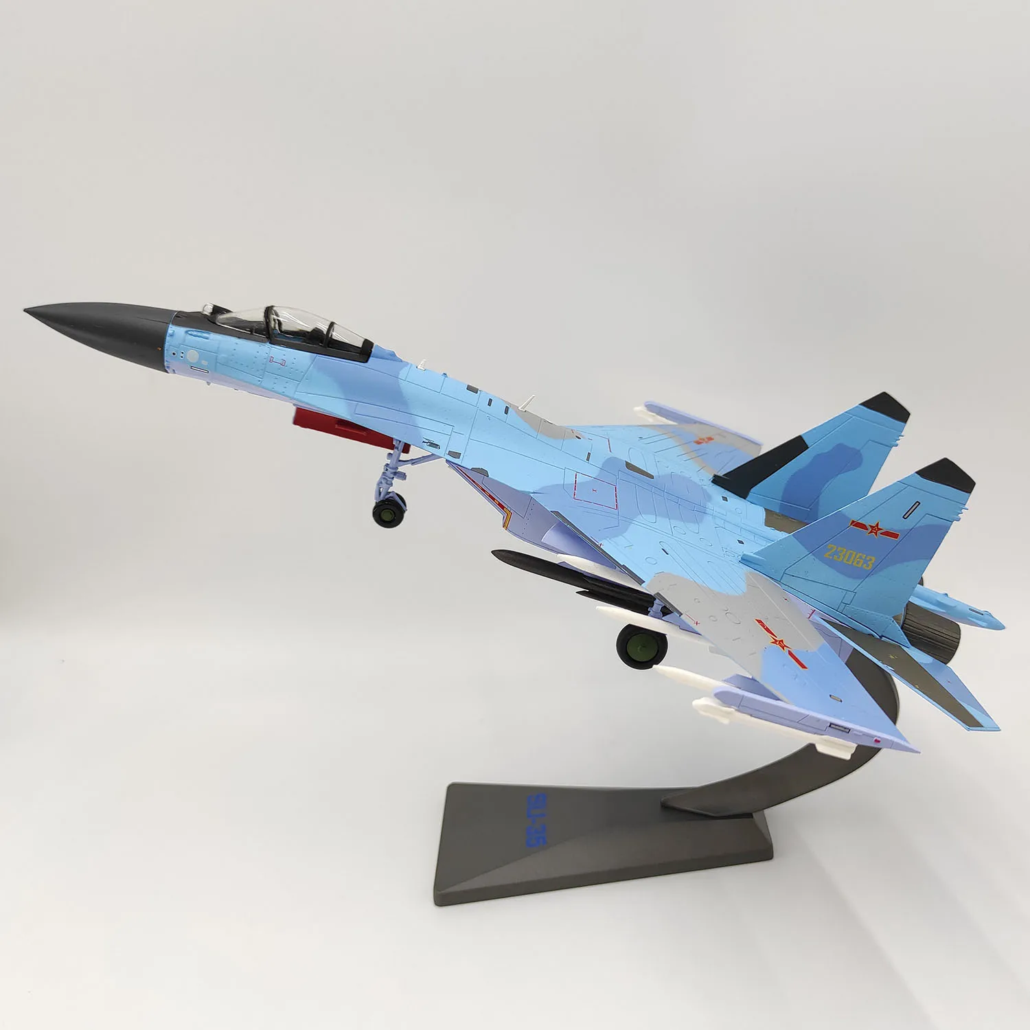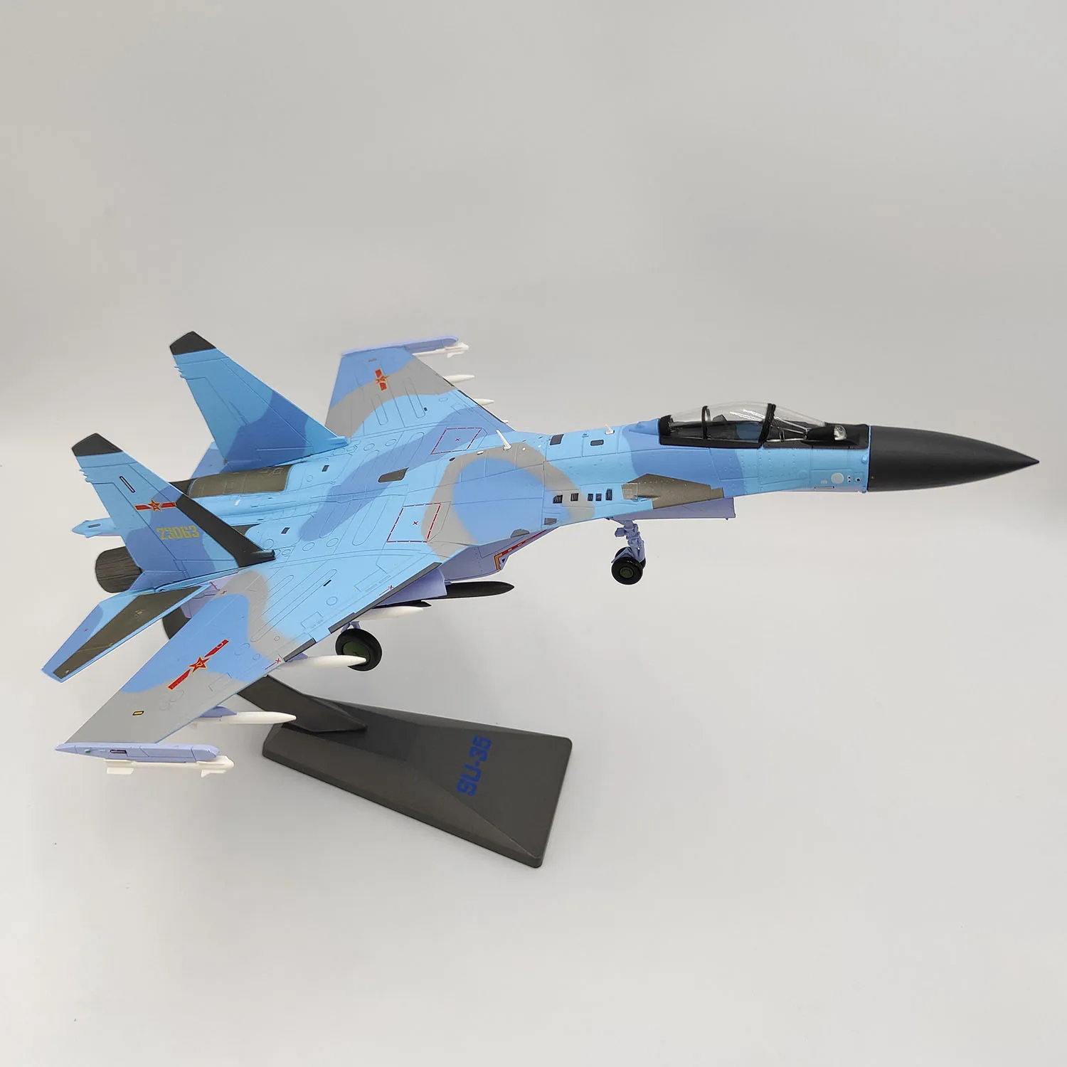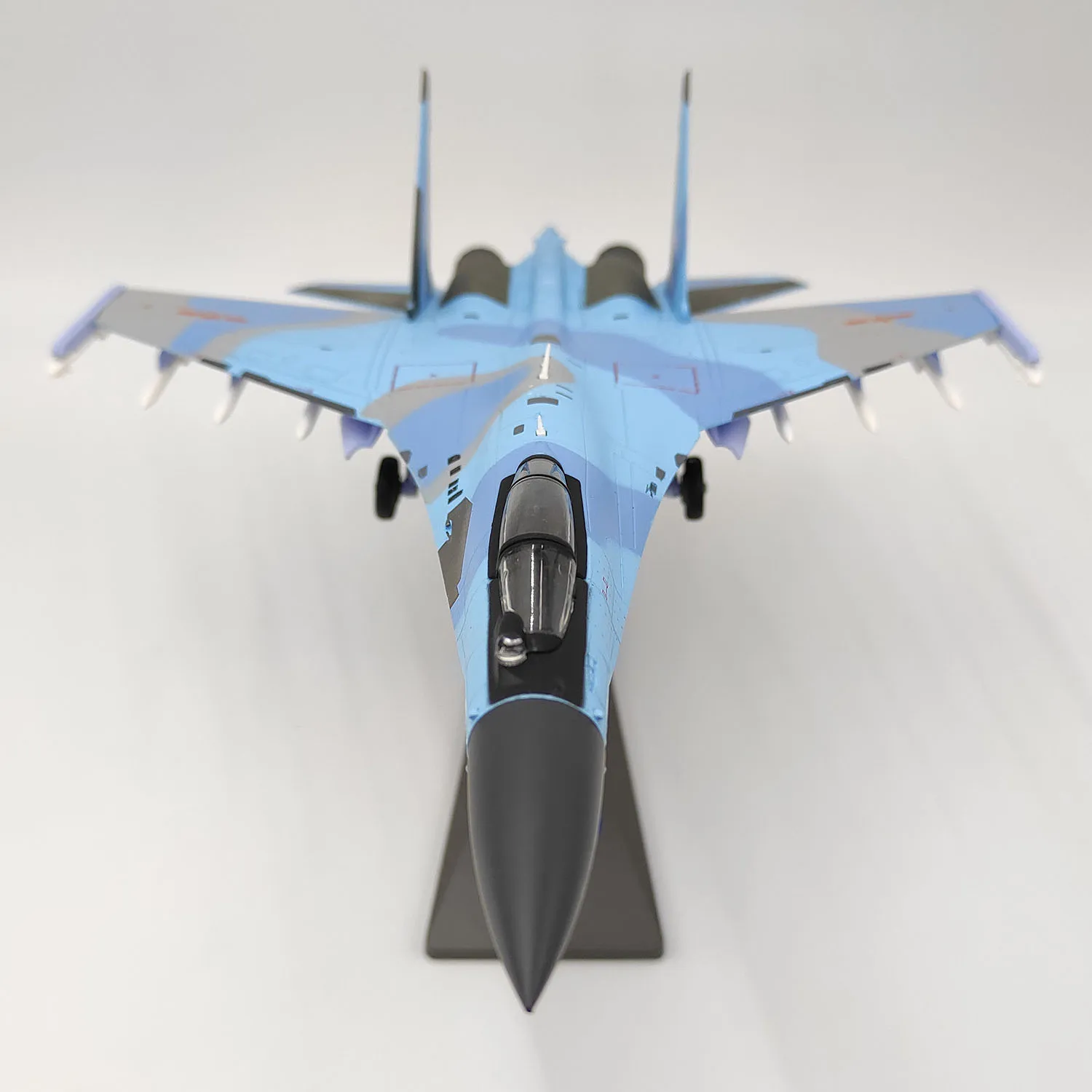 This exquisite Diecast 1/72 Scale Fighter Jet Model is a stunning representation of a military aircraft, specifically the Su-35 from the Chinese Air Force. Its vibrant blue finish, combined with intricate detailing, captures the essence of aerodynamic design and military prowess. Placed gracefully on a black display stand, it is a perfect centerpiece for your collection. The transparent cockpit offers a glimpse into the meticulously crafted cabin, while the sleek nose and detailed wings, complete with wingtip missiles, enhance its realistic appeal. Elevate your display with this model that reflects precision craftsmanship and artistry, drawing admiration from all who see it in your home or office.