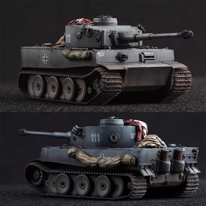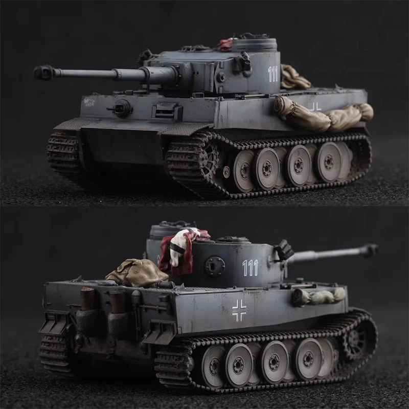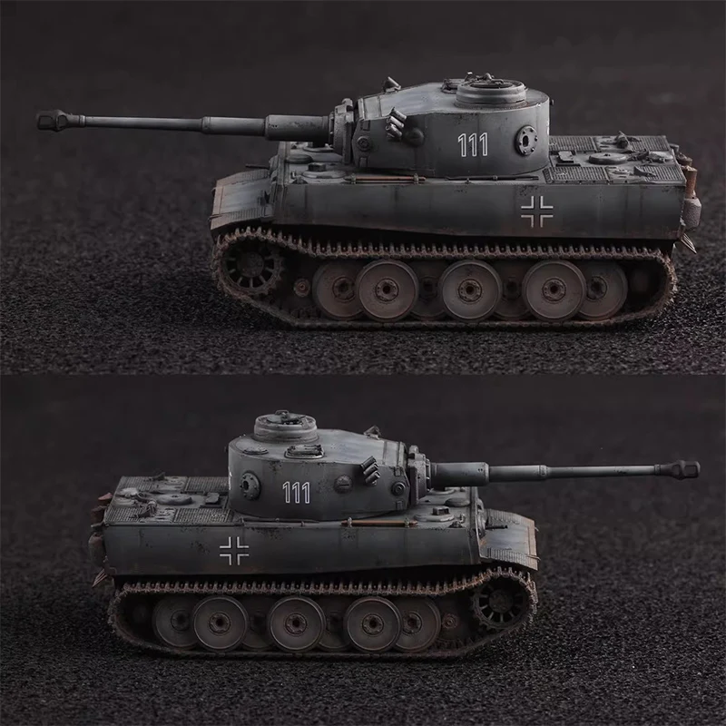 Experience a meticulously crafted 1/72 scale heavy tank model that brings military history to life. Featuring rich surface details and authentic weathering effects, this model captures the rugged essence of battlefield vehicles. Painted in realistic gray tones with weathering accents, it highlights rivets, panel lines, and small surface fixtures like hatches and periscopes. The model’s rounded turret, long barrel, and textured tracks evoke a true-to-life appearance. Beige fabric accessories add contrast, simulating cargo or storage rolls, enhancing realism. Perfect for display, collection, or decoration, this fragile yet captivating model allows enthusiasts to appreciate fine craftsmanship, detail, and historical accuracy, making it a unique addition to any serious collection or display space.