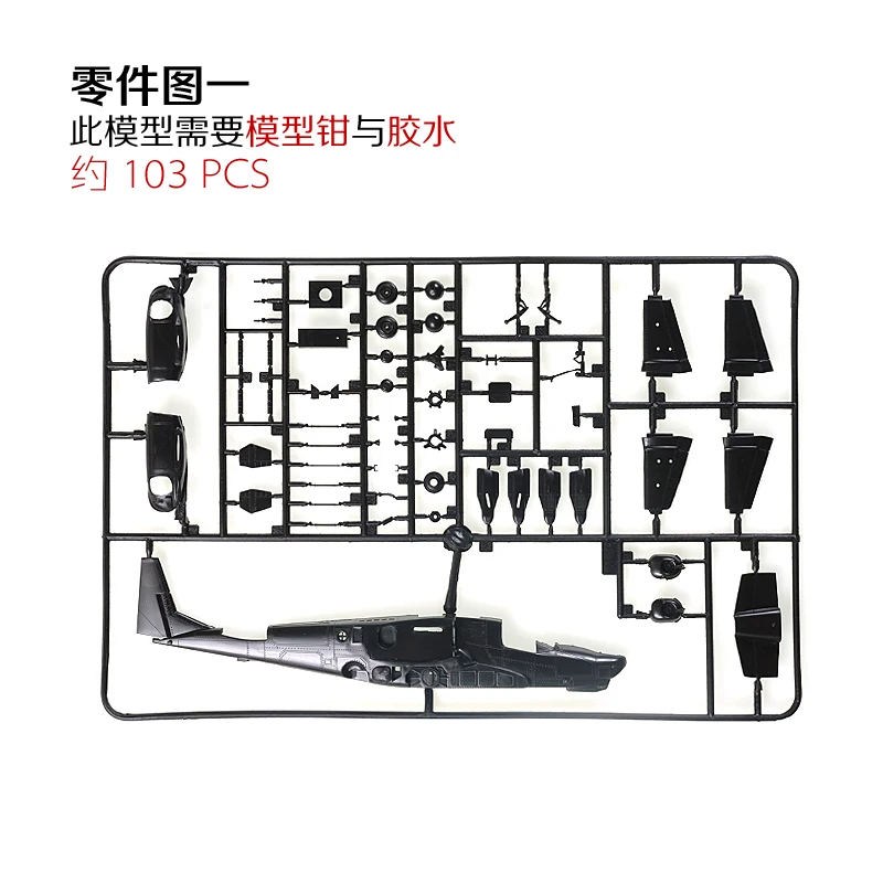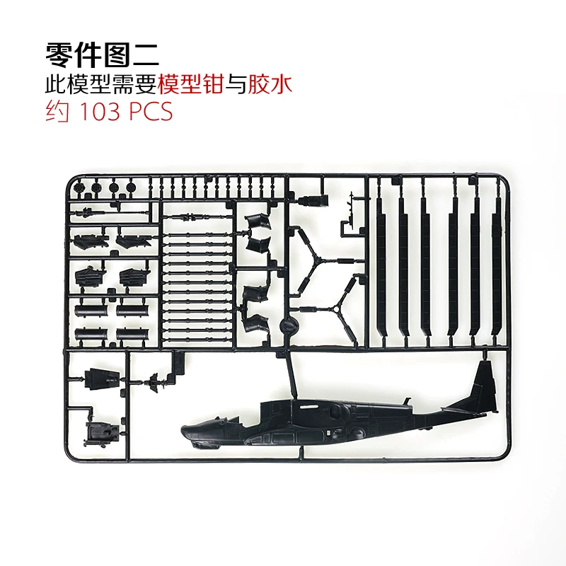 Experience the thrill of constructing your very own 1/72 scale KA-50 Fake Combat Helicopter Gunship model. This stunning assembly kit features a sleek and robust design, primarily in black, embodying the essence of military helicopters. As you progress through the assembly, you will appreciate the intricate details such as the realistic textures of the fuselage and the transparent cockpit that reveals simplified controls. The large rotors, under-slung armaments, and vertical tail section elevate its impressive aesthetic and combat-ready appeal. Perfect for model enthusiasts, this engaging DIY project is sure to provide hours of enjoyable craftsmanship.