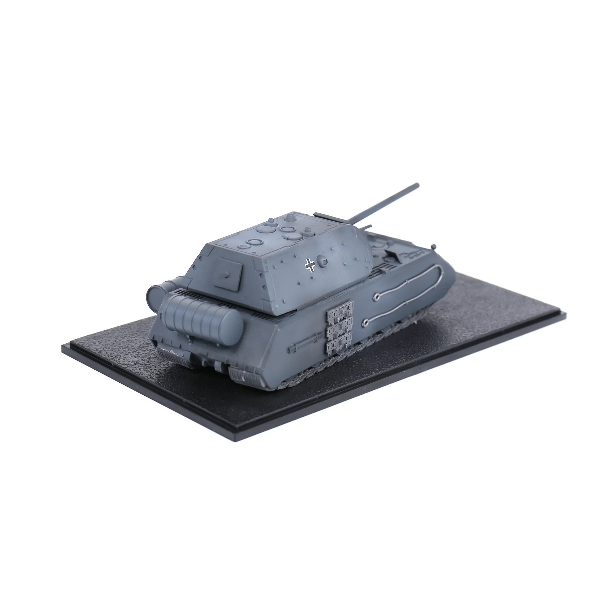 Bring history to life with this highly detailed 1/72 scale metal replica of the Panzerkampfwagen VIII Maus tank, crafted for durability and realism. Finished in a sleek matte gray labeled “MAUS,” this model showcases a robust hull with angular, sloped armor, and a well-integrated turret with a long, straight gun barrel. The surface features finely molded details including hatch panels, panel lines, rivets, and subtle raised elements, vividly capturing the tank’s intricate mechanical design. Detailed tracks with linked segments add an extra layer of authenticity. Perfect for collectors and enthusiasts, this meticulously crafted model allows you to appreciate the formidable WWII super-heavy tank’s engineering and historical significance.