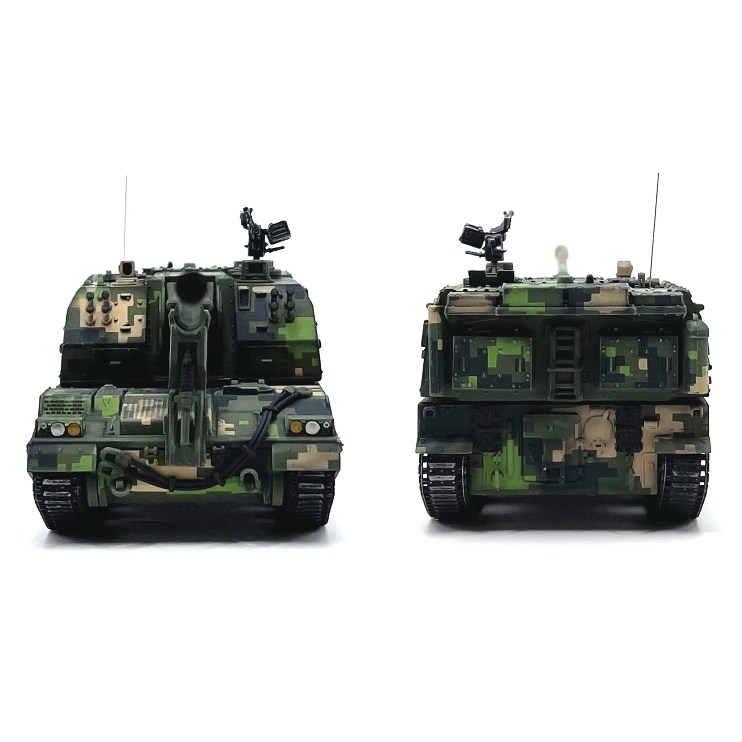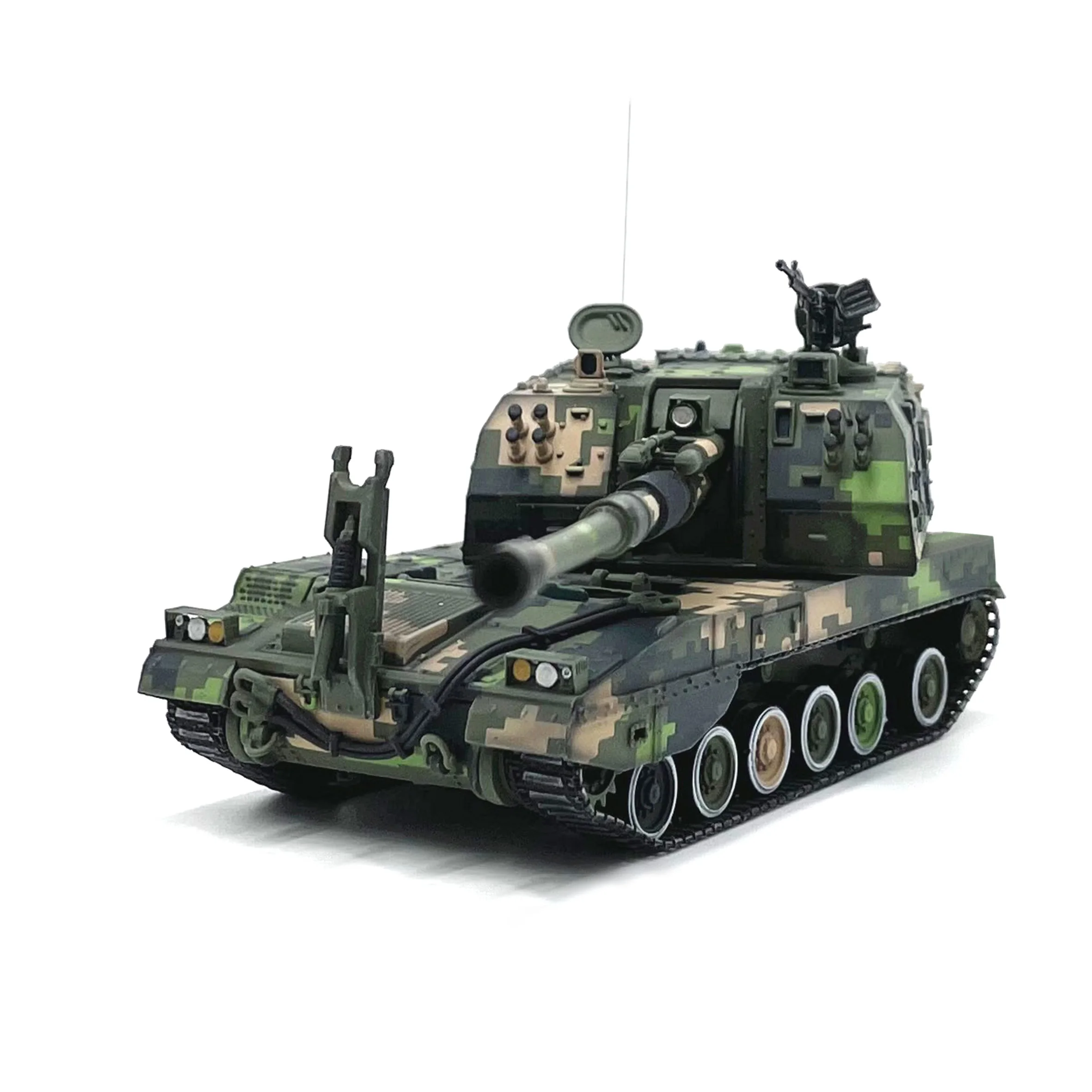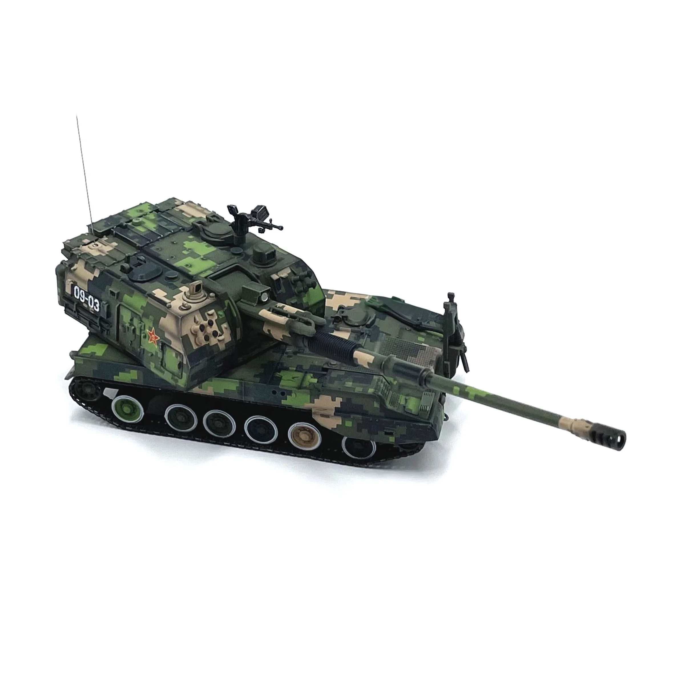 The 1/72 scale model of the PLZ05 155mm self-propelled artillery is a stunning tribute to military craftsmanship. With a striking camouflage pattern combining shades of green, beige, and dark green, this collector's piece celebrates the 60th anniversary parade. Its intricate details include a long artillery barrel, realistic tracks in black finish, and a clear vehicle body number “09-03”. Made from high-quality ABS plastic, this piece measures approximately 12.2 cm long, 4.5 cm wide, and 4.2 cm high. A true representation of military history, it’s perfect for enthusiasts and collectors.