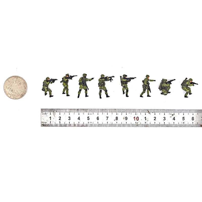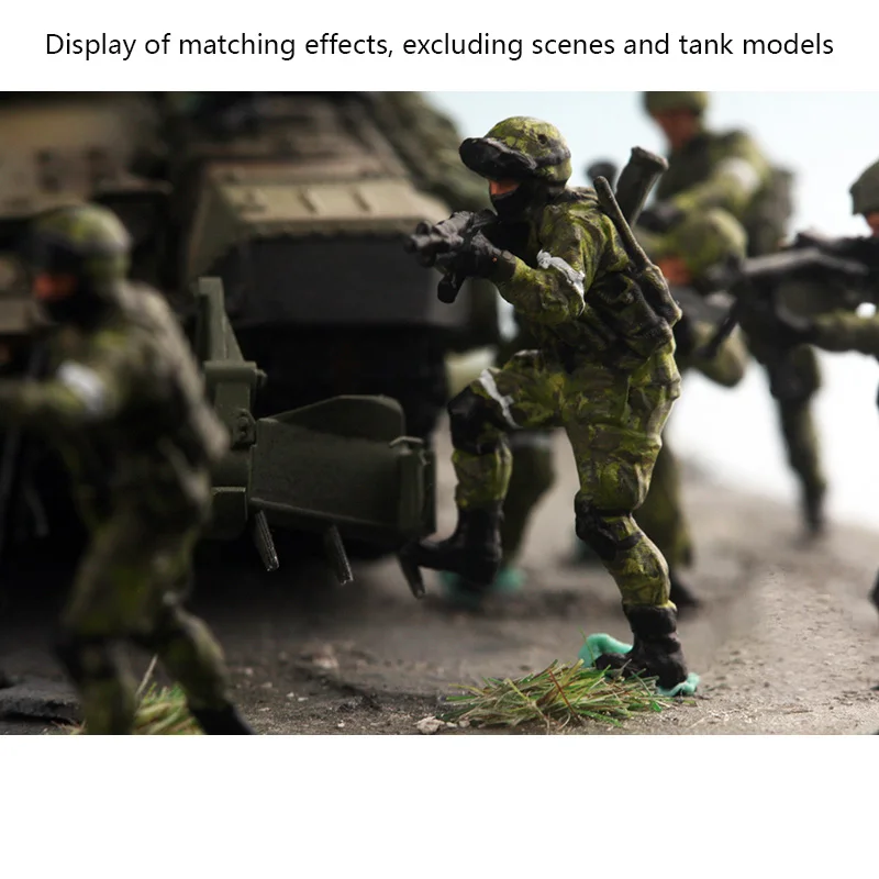 Experience the thrilling intricacies of military modeling with this 1/72 scale Russian combat group model. Featuring eight vividly colored soldier figures, each crafted from durable PVC plastic and standing approximately 3 cm tall, this set encapsulates realistic poses indicative of military action, perfect for any enthusiast's display. The detailed camouflage patterns depict genuine Russian military attire, enhancing the authenticity. These figures are designed to integrate seamlessly into military sand table scenarios, inviting you to create immersive scenes of tactical formations and operations. Immerse yourself in the artistry and craftsmanship of this model set and transform your military-themed displays.