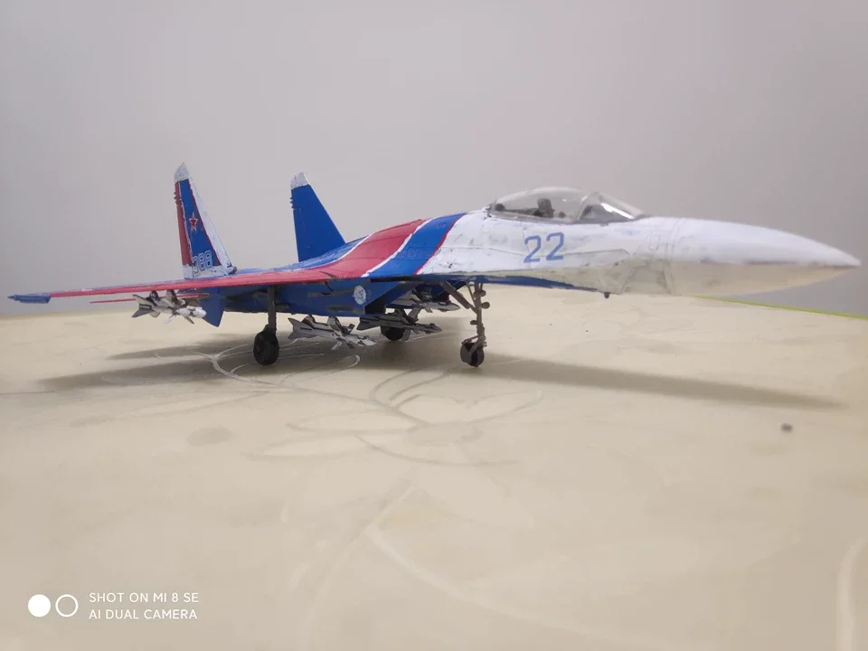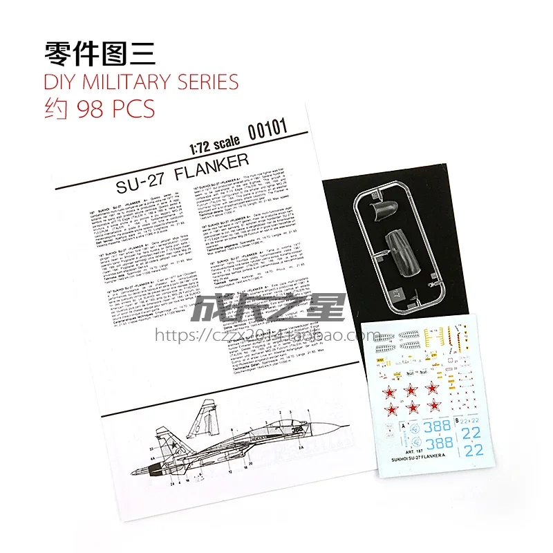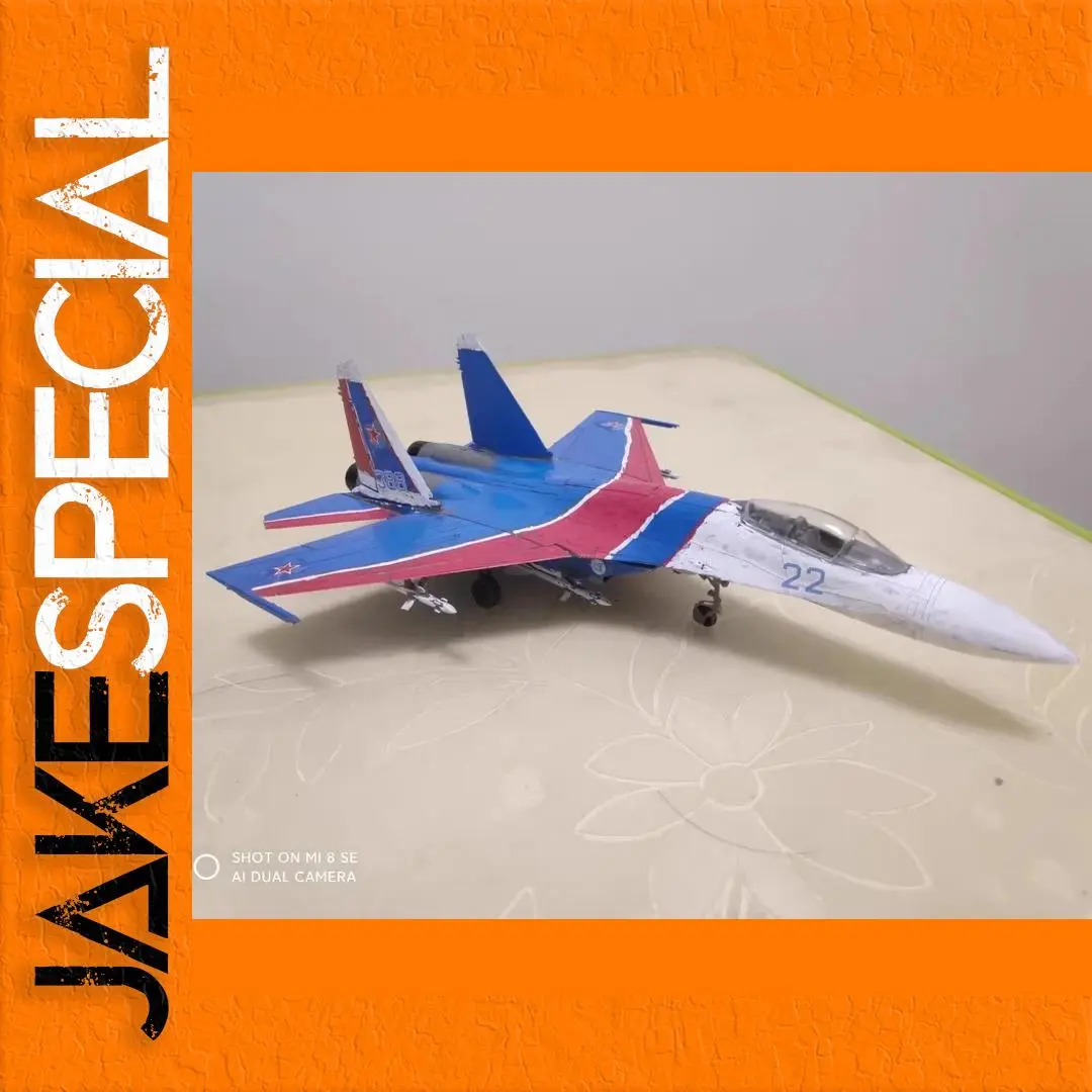 Experience the thrill of aviation with the 1/72 scale SU-27 Side Guard Fighter model, crafted from high-quality plastic and featuring 50 intricately detailed components. This stunning aircraft showcases a vivid color scheme with a transition from bright blue at the rear to white at the front, complete with a glossy cockpit and bold identification number “22.” The wings exhibit blue and red accents, while intricate details such as the air intake and landing gear enhance realism. With upright tail fins proudly displaying the Soviet star insignia, this assembly model is perfect for display or a rewarding DIY project for enthusiasts.