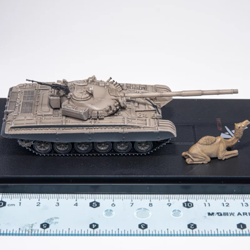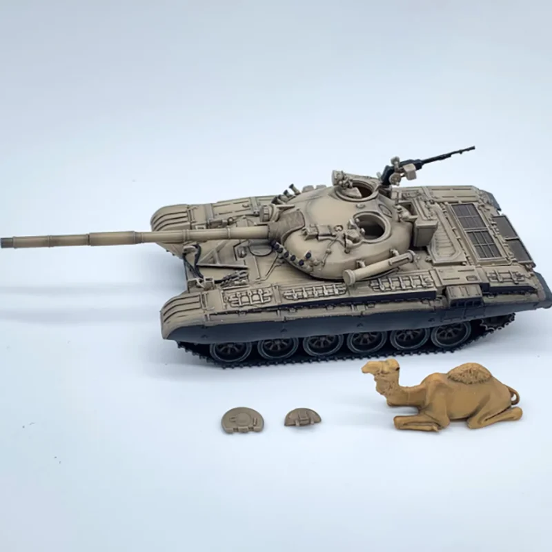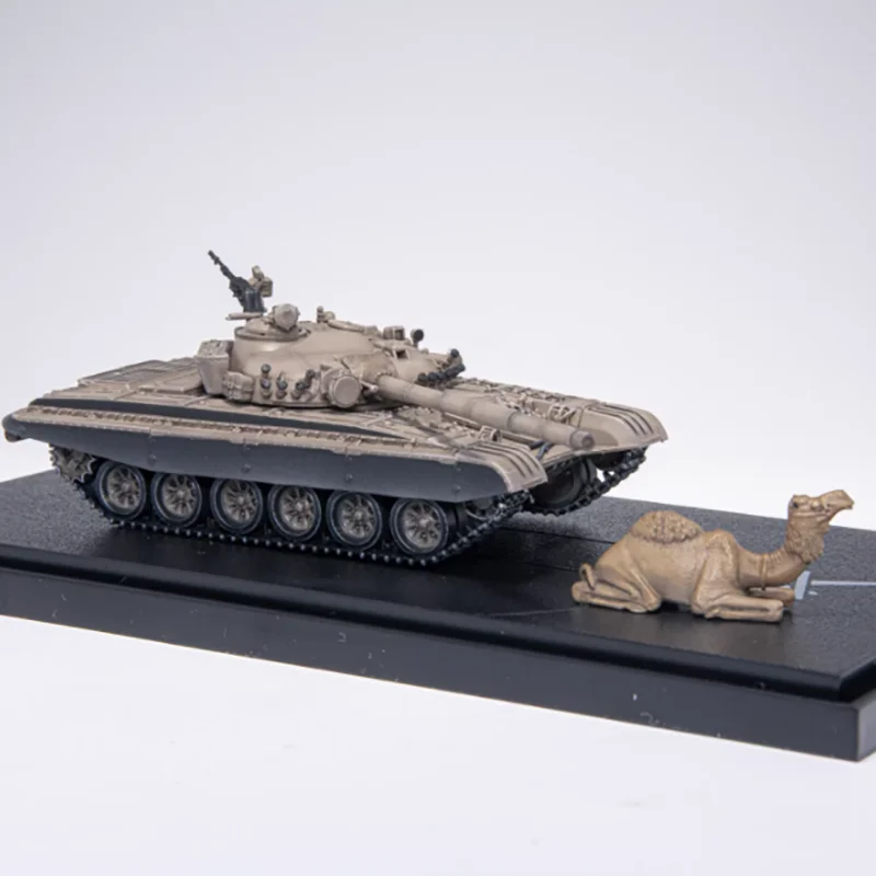 Bring home a highly detailed 1/72 scale plastic model of the T-72A tank, perfect for collectors and display enthusiasts. This finished diecast model showcases intricate surface details, including finely molded panel lines, hatches, and textures that enhance realism. Painted in a subdued beige or light tan hue, the model features a prominent turret with a long main barrel, complemented by detailed tracks with individually linked segments in darker shades. Designed for static display, it’s non-electric and suitable for ages 14 and above, offering a rugged, military-inspired aesthetic that captures the authentic essence of the iconic tank.