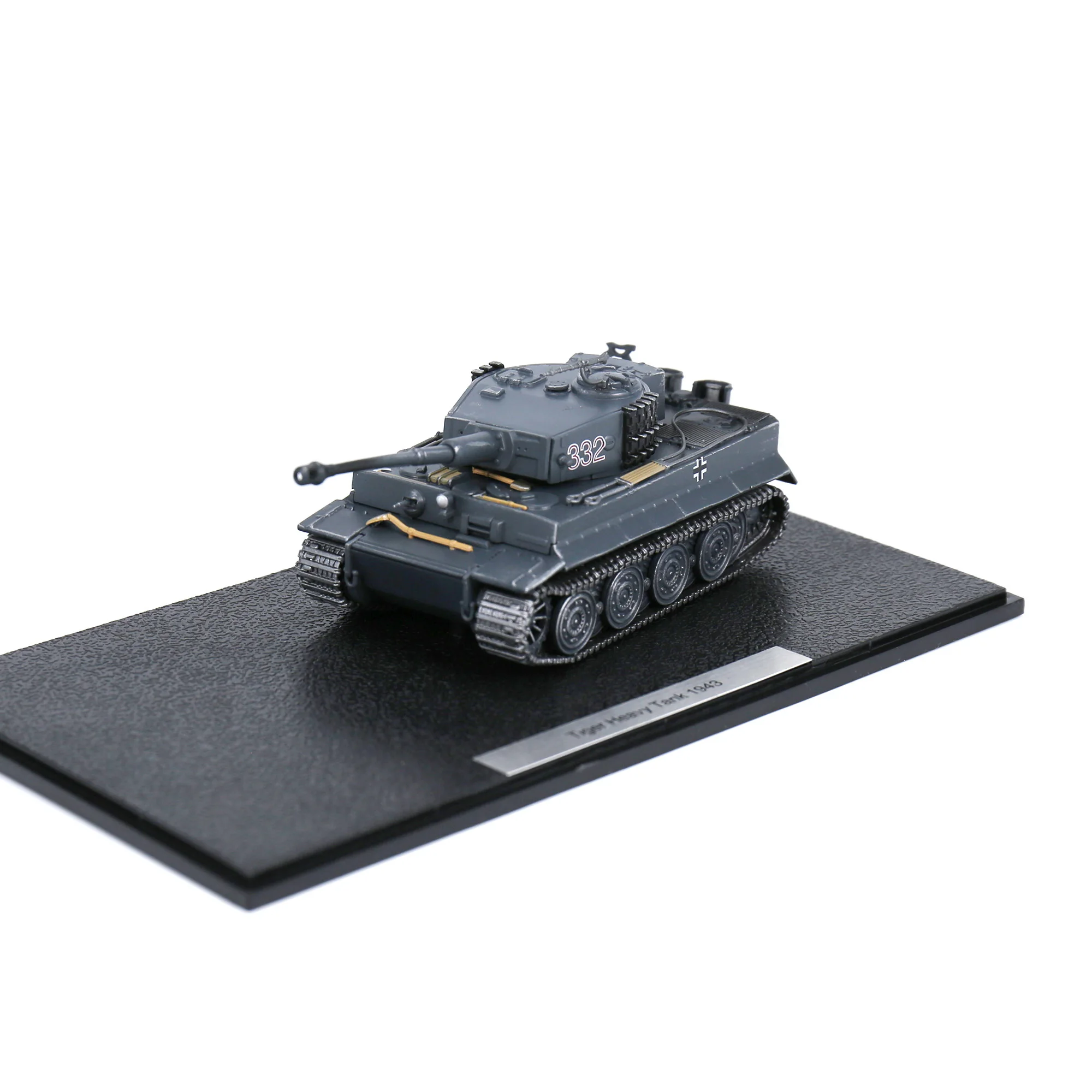 Step into history with this meticulously crafted 1/72 scale Tiger Heavy Tank from 1943. Rendered in a striking dark gray matte finish, this model captures the rugged, military aesthetic with exceptional precision. Its surface highlights fine panel lines, rivets, and intricate details like hatching hatches, periscopes, and a mounted machine gun, creating a highly realistic miniature replica. The tracks are composed of detailed individual links, seamlessly wrapping around the patterned road wheels to enhance authenticity. The sloped armor design and rounded gun barrel, with its smooth cylindrical shape, emphasize its formidable structure. Subtle weathering effects add depth, suggesting wear and tear, making it a perfect collectible for enthusiasts and history buffs alike. This model exudes durability, craftsmanship, and historical accuracy.