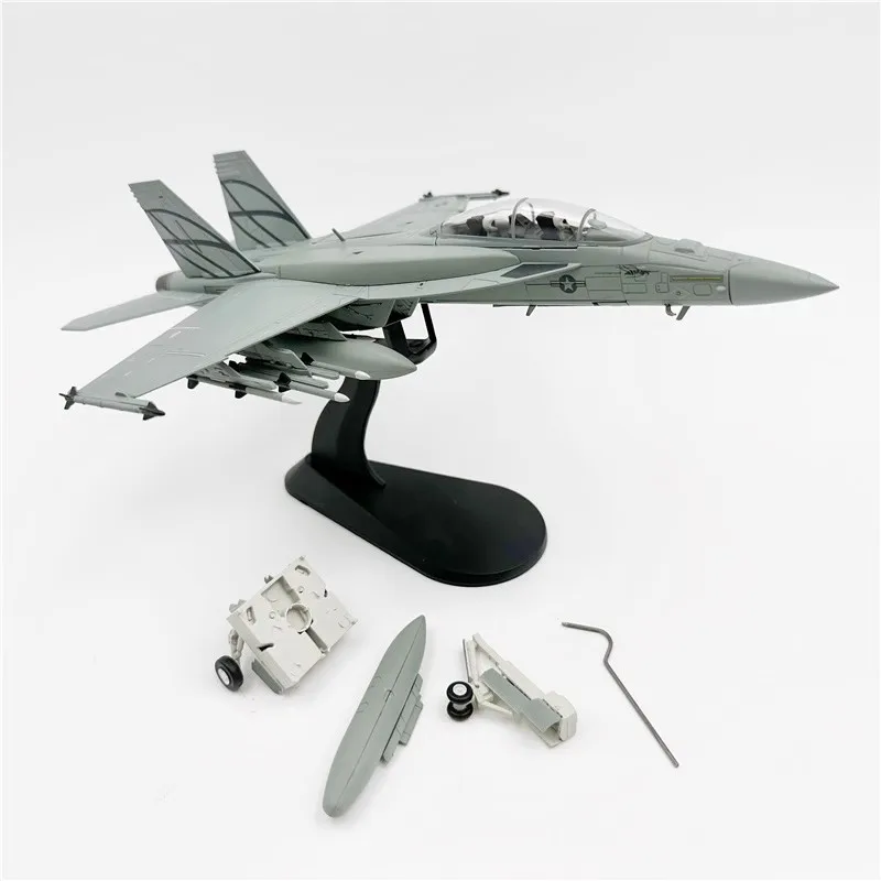 Imagine having the stunning 1/72 scale model of the US F/A-18F Block III fighter aircraft at the center of your collection. Crafted from durable metal with a diecast construction, it not only showcases a stunning gray color scheme but also brings every detail to life with real panel lines, rivets, and a sleek fuselage. The model measures approximately 25 cm in length and 18 cm in width, presented on a stylish black display stand. It features adjustable landing gear, allowing you to switch between flight and ground mode effortlessly, making it an eye-catching piece that stands out in any setting.