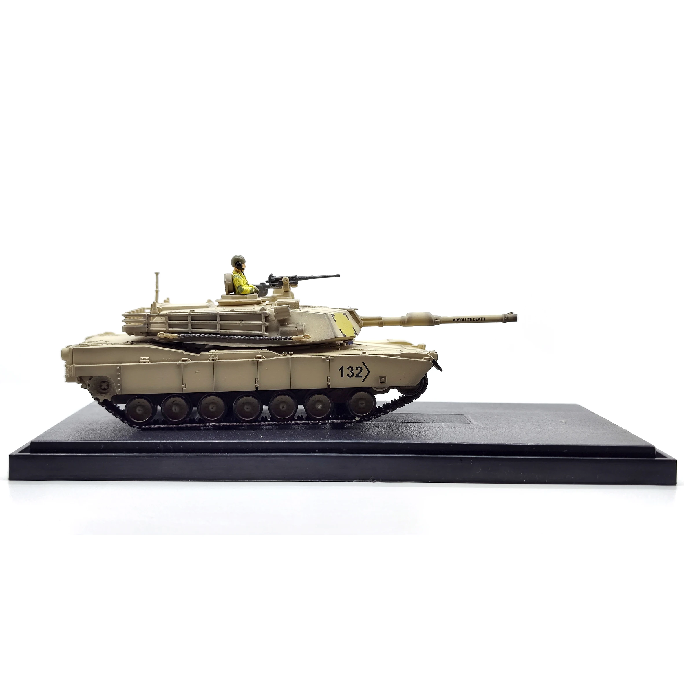 Imagine adding this exquisite 1/72 scale model of the US M1A2 main battle tank to your collection. Finished in a captivating desert camouflage color scheme, boasting sandy beige tones with darker accents, it is a remarkable piece for any enthusiast. The model is crafted from diecast resin, featuring intricate panel lines and components that enhance its realism. With a movable barrel and rotatable turret, it offers dynamic display options. A soldier figurine dressed in a bright yellow tactical uniform adds a pop of color and life to the depiction. Now visualize showcasing this stunning piece, safely housed in a stylish display case, an artful addition to your decor.