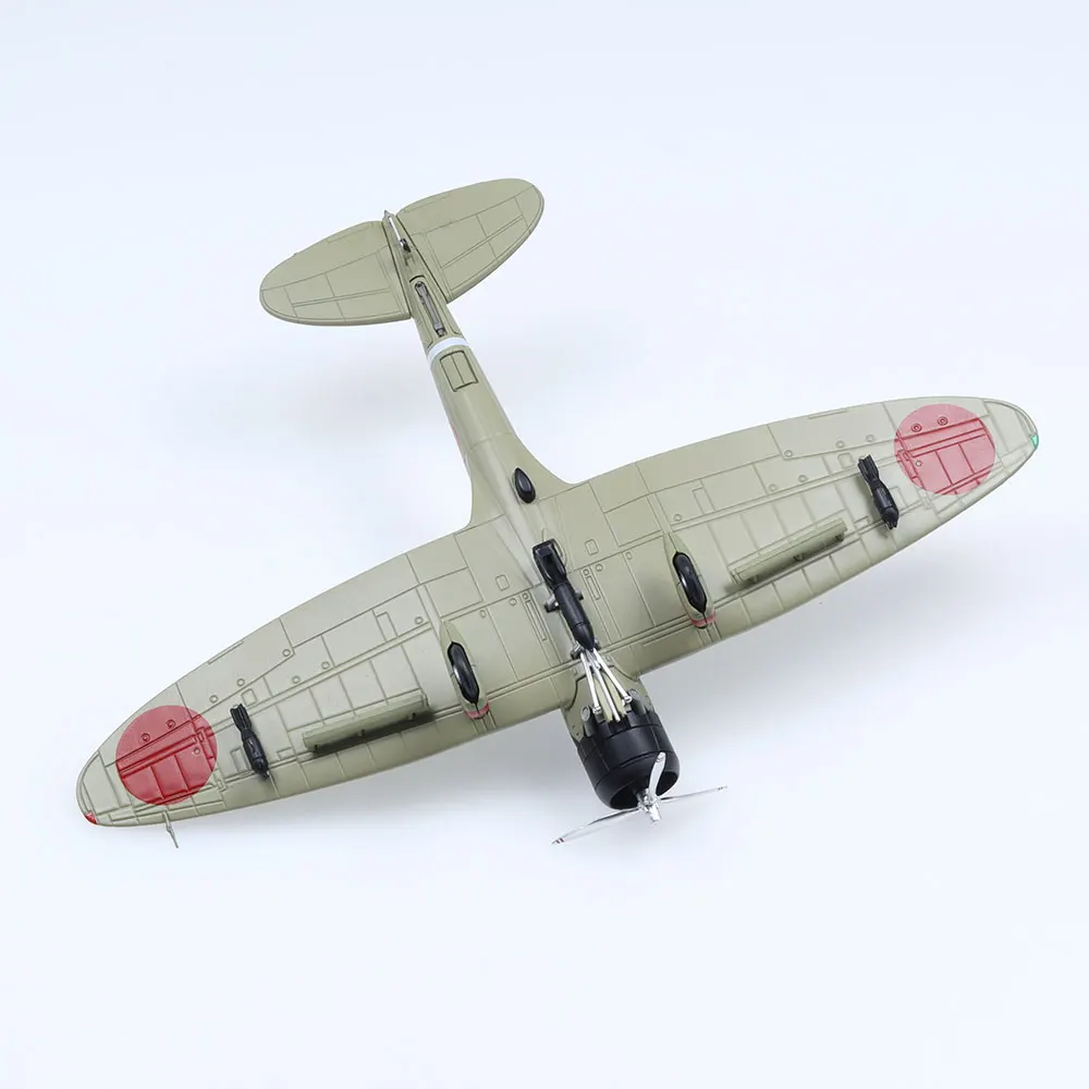 Bring history to life with this exquisitely crafted 1/72 scale Type 99 aircraft model. Made from a combination of alloy and plastic, this static collectible boasts a sleek beige finish that captures the vintage, military-inspired aesthetic perfectly. Its detailed surface features subtle panel lines, smooth contours, and realistic markings, including prominent red insignias (hinomaru) on both wings and the fuselage side. The transparent canopy showcases fine molding, giving a lifelike appearance. The black nose cone with white, black, and red propeller blades provides a striking focal point. Mounted on a display stand, it can be positioned at an angle to highlight its elegant profile. This model makes a refined addition to any collection or display space, appealing to enthusiasts and collectors alike.