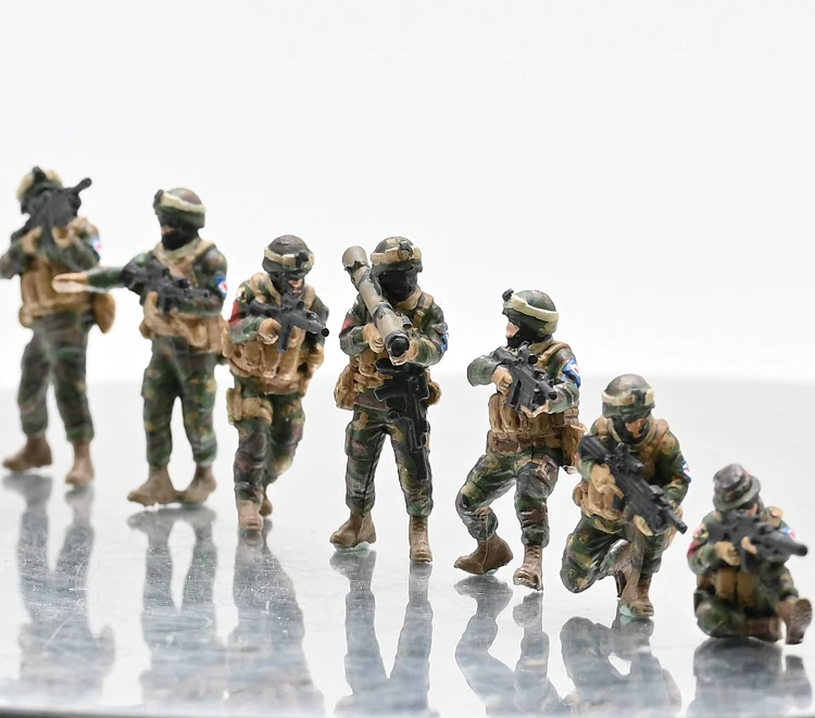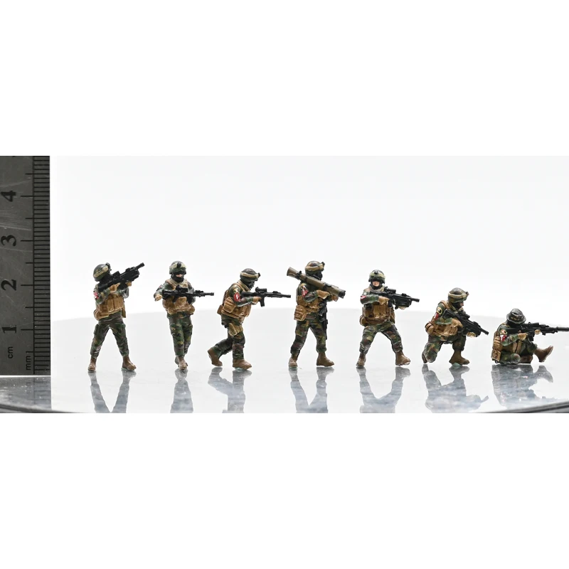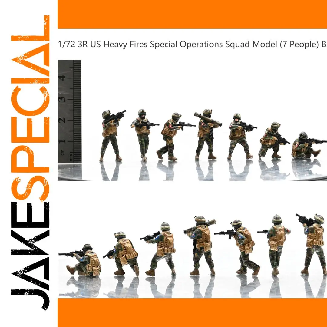 Enhance your military tabletop collection with this detailed 1/72 scale model set of the 3R US Heavy Fires Special Operations Squad, featuring seven vividly painted figures dressed in camouflage uniforms with tactical gear. Each soldier is posed in action stances, holding rifles and a rocket launcher, adding realism and dynamism to your dioramas or display shelves. Crafted from high-quality PVC plastic, these colored miniatures measure approximately 3cm in height, making them perfect for 1:72 scale military sand table scenarios. Ideal for enthusiasts and collectors, this set brings a sense of soldierly authenticity, inspiring you to visualize epic battle scenes right in your own collection.