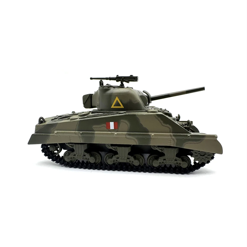 Immerse yourself in military history with this highly detailed 1/76 scale Sherman MKIII alloy model. Crafted from durable metal, this static display toy features an authentic camouflage pattern in shades of green and brown, giving it a rugged, realistic appearance. The intricate embossing showcases hatches, vents, and panel lines, while the turret is topped with a small machine gun and a distinctive yellow triangle marking. The meticulously sculpted tracks with individual links connect seamlessly over detailed road wheels, sprockets, and idler wheels finished in dark gray, creating a striking contrast against the camo pattern. Perfect for collectors or for enhancing a military-themed display, this model exudes authenticity and craftsmanship, making it a treasured piece for history enthusiasts.
