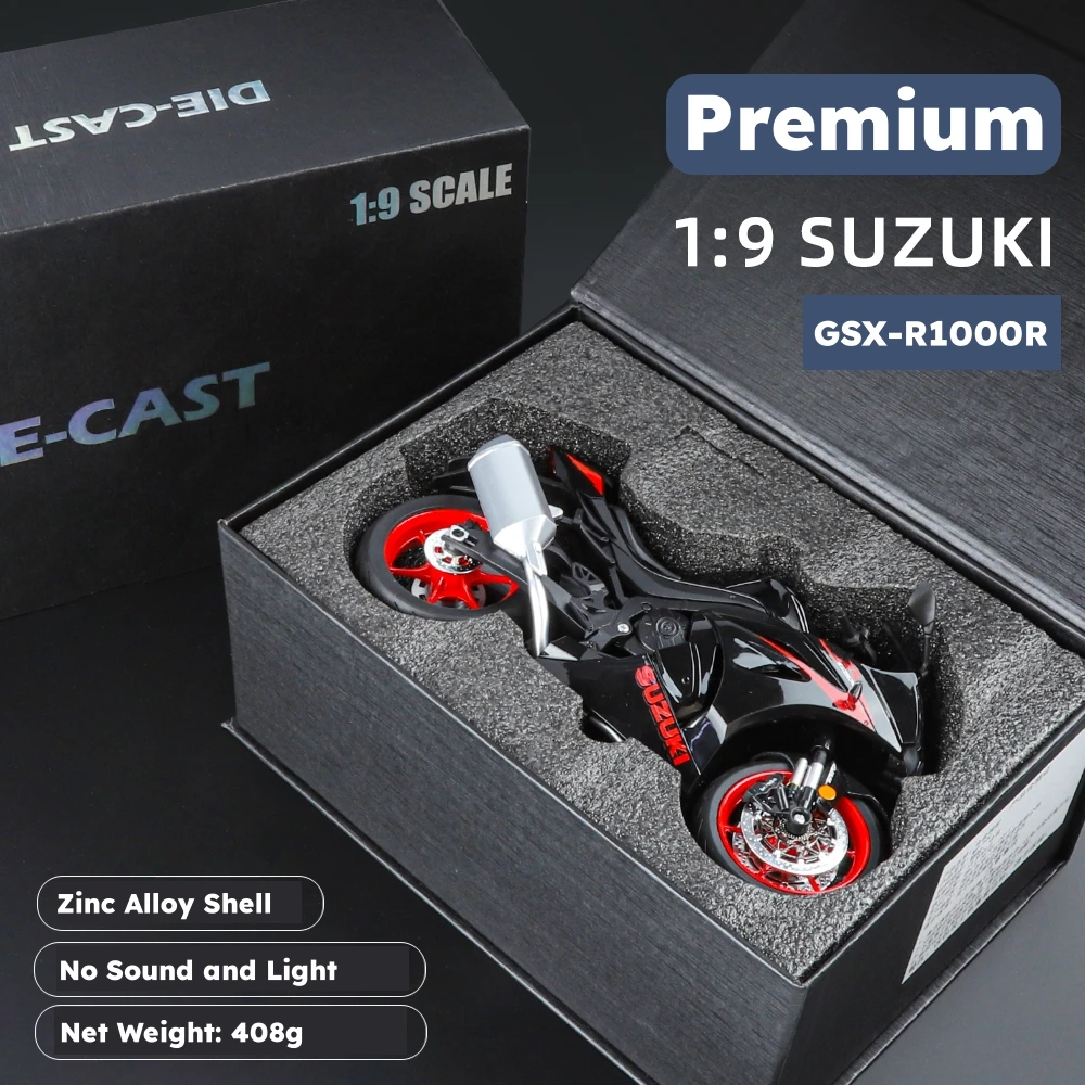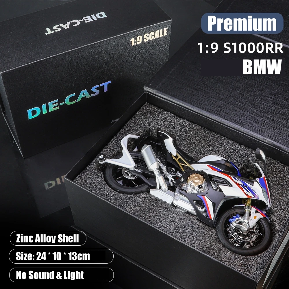 Experience the thrill of high-performance motorcycles with this premium 1:9 scale diecast model, approximately 20 cm in length. Crafted from durable metal, it features detailed fairings, realistic engine details, and vibrant color options including BMW S1000RR, Kawasaki Ninja H2, Kawasaki H2R, Suzuki GSX-R1000RR, and Suzuki GSX-1300R. Designed for collectors and enthusiasts aged 14 and above, this non-electronic miniature showcases sleek, aerodynamic styling with sharp lines, contrasting accents, and intricate components that highlight its sporty and aggressive aesthetic. Perfect for display or gifting, it captures the essence of cutting-edge motorcycle design in a high-quality collectible format.