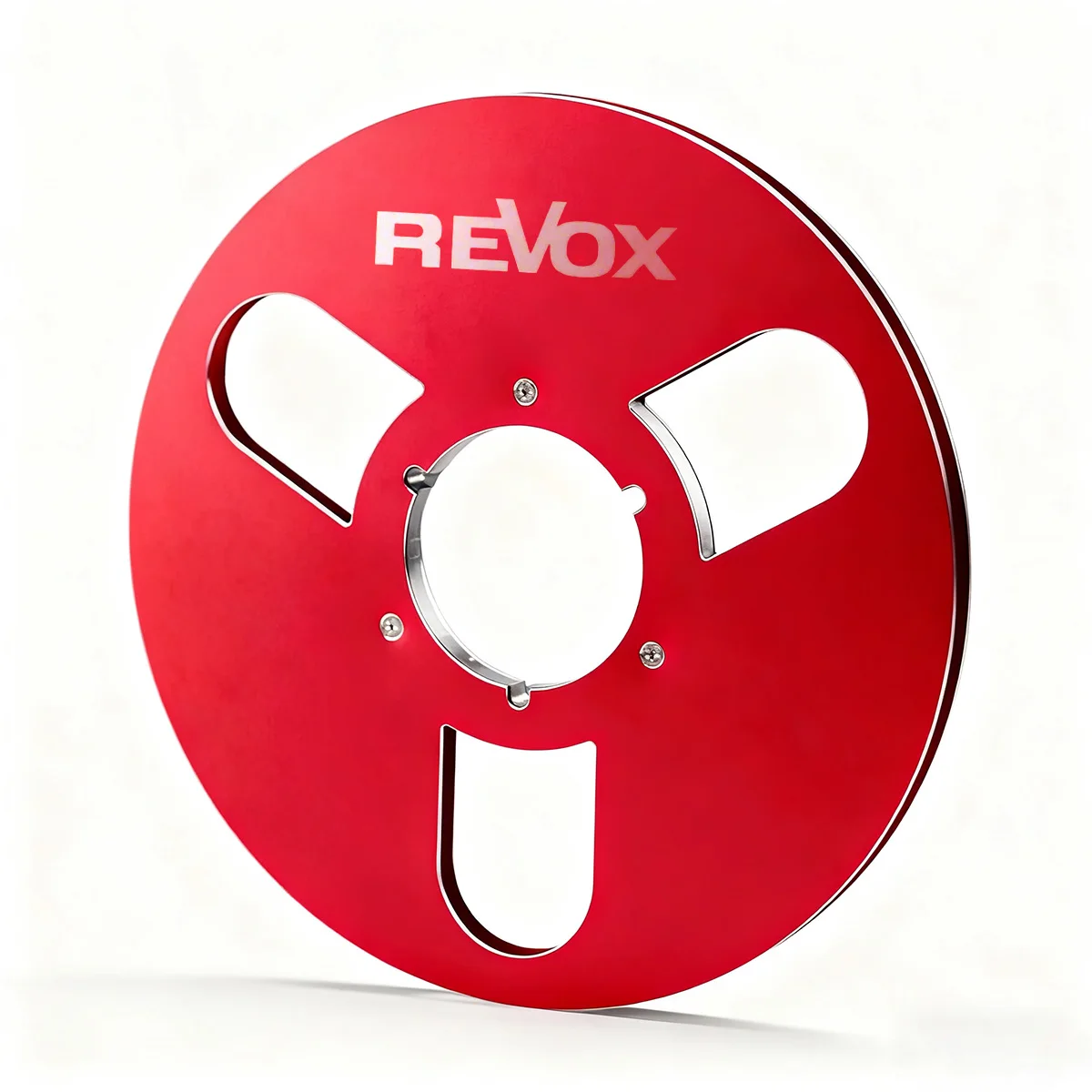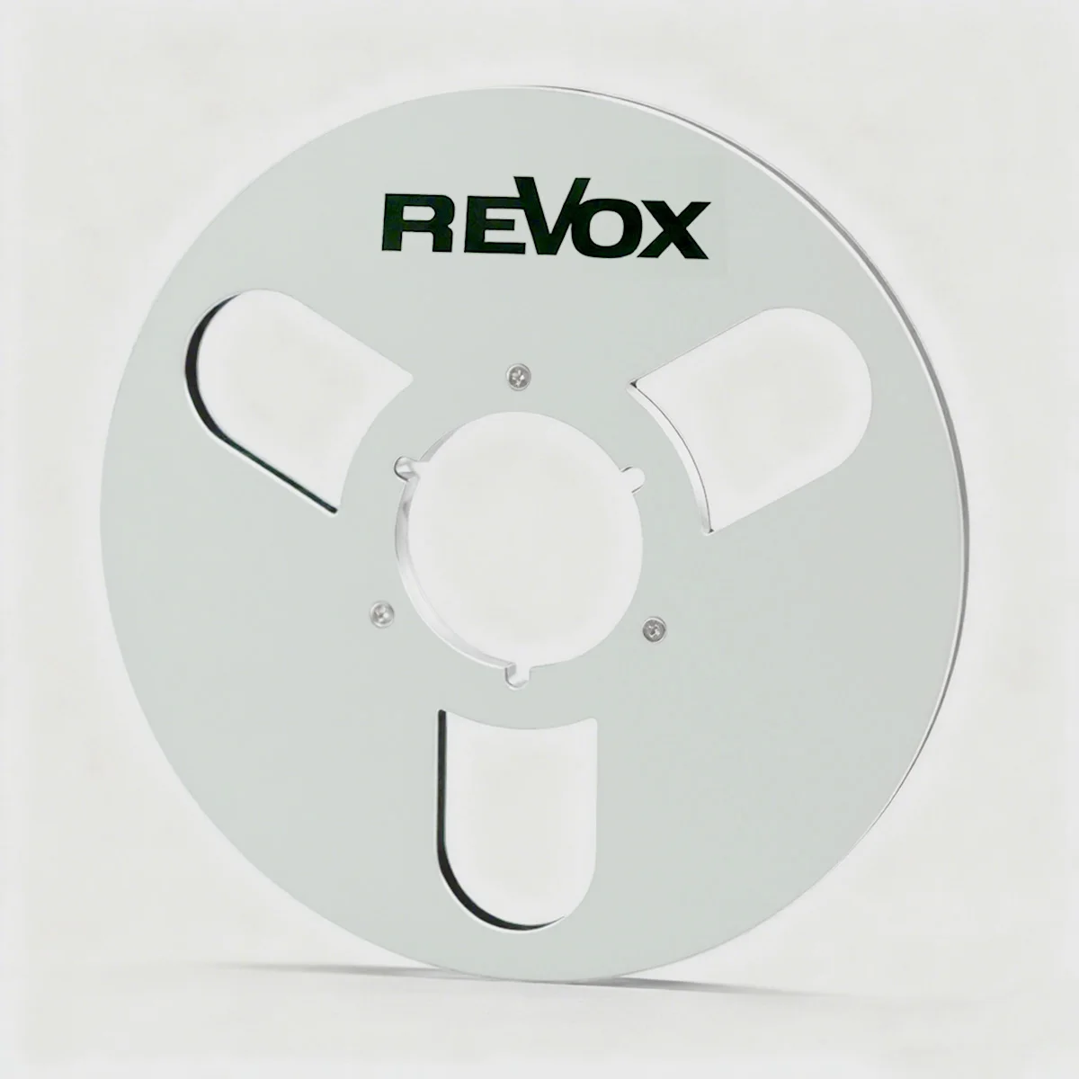 - Includes a central indented hub with three small mounting holes, designed for secure attachment and easy compatibility with various reel-to-reel tape recorders, enhancing stability during operation.