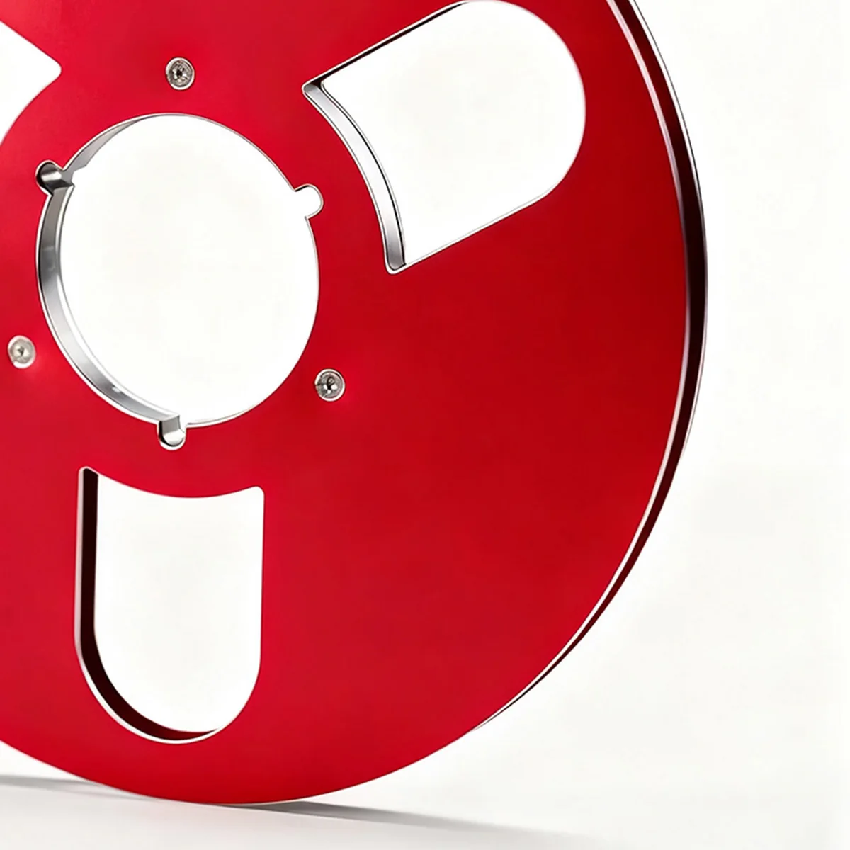 Imagine upgrading your reel-to-reel tape recorder with this durable, high-quality aluminum alloy reel. Its minimalist white matte finish and precise 10-inch diameter ensure a perfect fit for 1/4-inch tapes. Designed for universal compatibility, it works seamlessly with any open reel deck, whether for professional recording, archiving, or editing. Featuring three evenly spaced, curved cut-outs, it offers easy tape wound management while maintaining an elegant, industrial aesthetic. The sturdy aluminum construction provides long-lasting performance, reducing noise and improving sound quality during recording, erasing, and rewinding. With multiple color options—black, blue, orange, red, and silver—you can customize your setup to match your style or equipment. Enhance your analog experience with this reliable, practical reel.