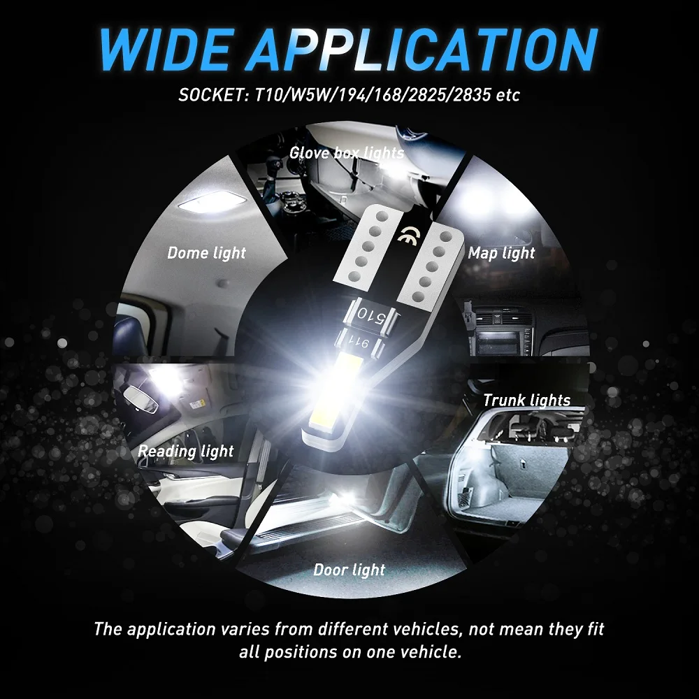 - Set includes 10 T10 W5W LED bulbs with 2W power each, ideal for multiple interior lighting applications in your vehicle.