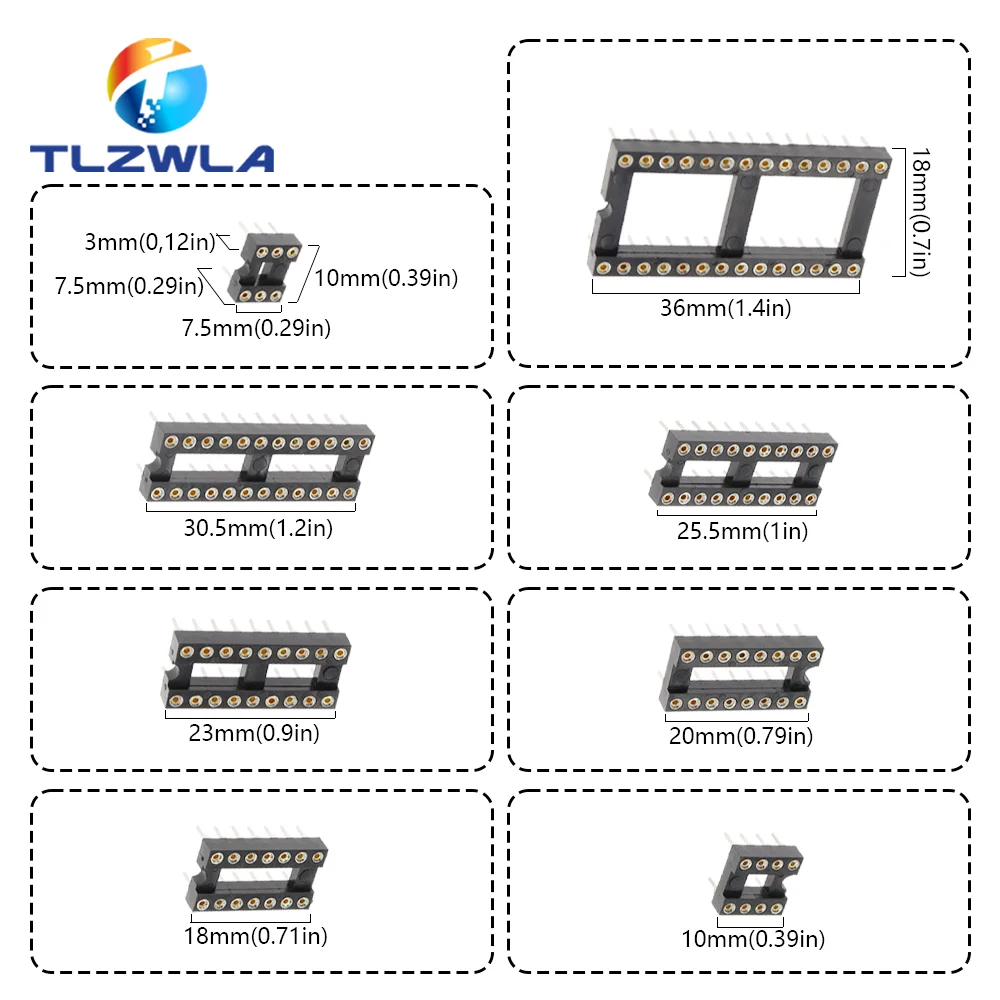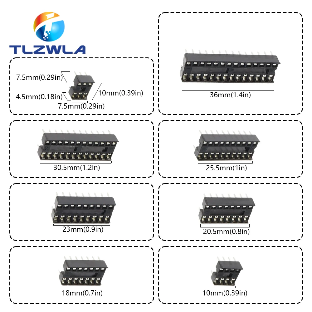 Imagine effortlessly inserting and testing your integrated circuits with this set of 10 high-quality DIP IC sockets. Designed for professionals and hobbyists alike, these sockets provide secure, reliable connections for a variety of DIP pin configurations from 6 to 40 pins. Crafted from durable black plastic with gold-plated contacts, they ensure excellent conductivity and resistance to corrosion. The sockets' sleek, matte finish and precise edges give a professional look, while their organized arrangement makes your workspace more efficient. Whether you're working on prototypes, repairs, or testing, these sockets streamline your workflow and reduce wear on your ICs, making them an essential addition to any electronic toolkit.