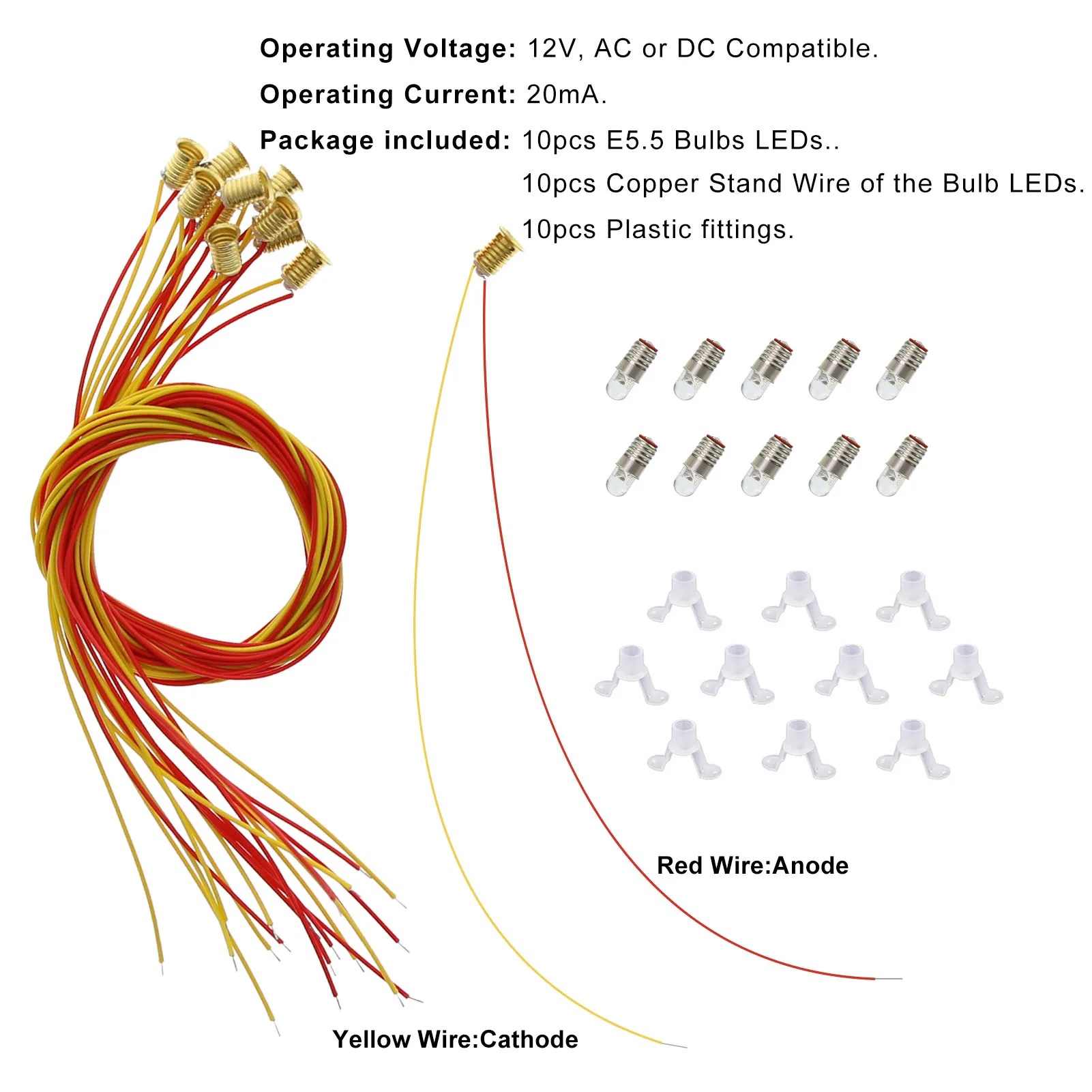10-Pack E5/E5.5 LED Bulbs for Miniature Models