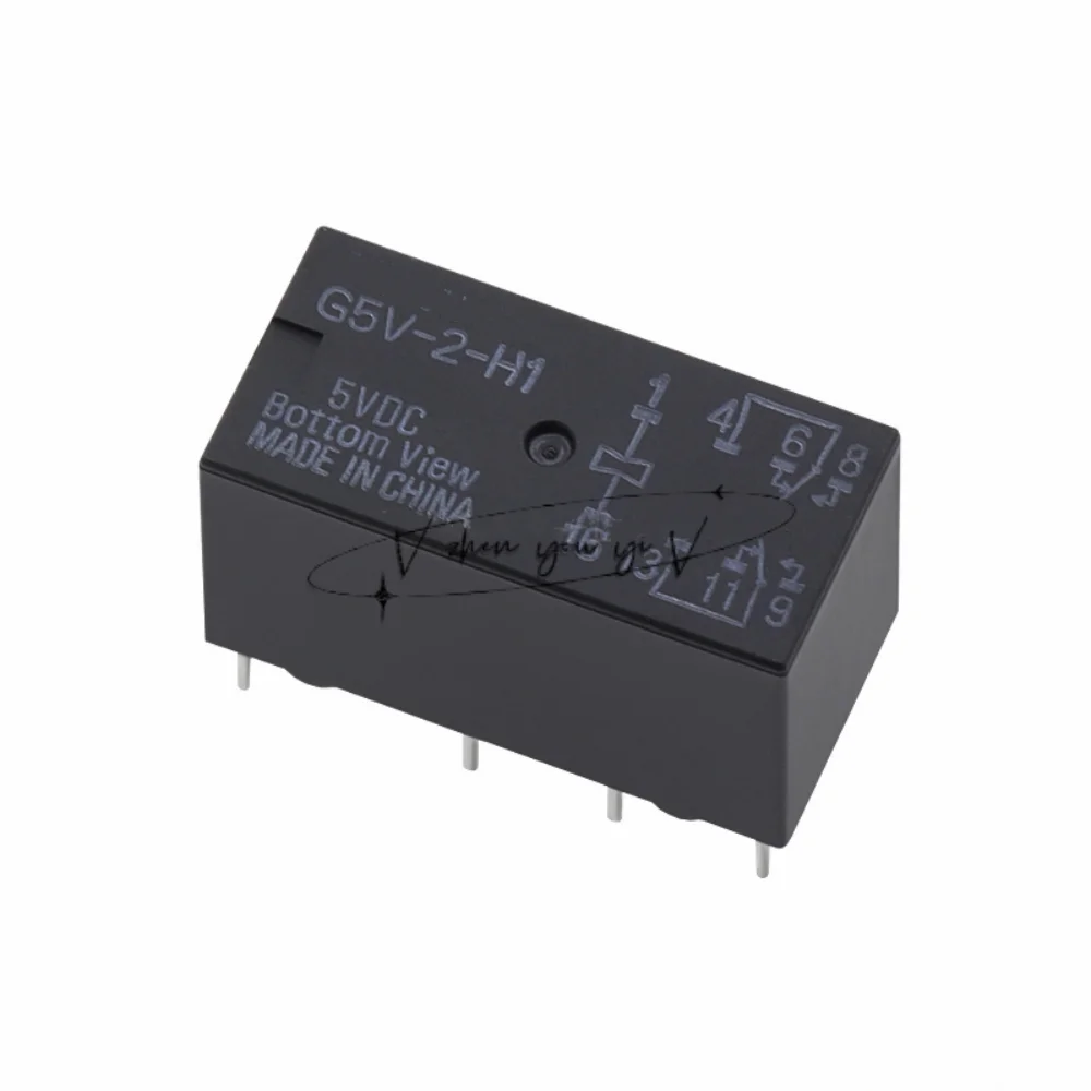 Experience seamless control with this set of 10 high-quality G5V-2 and G5V-2-H1 electromagnetic relays. Designed for versatility, these compact relays measure 20.5 mm by 10 mm by 11.5 mm, fitting easily on your PCB. Featuring a sleek black plastic body with white printed symbols, they offer a modern, professional aesthetic that complements any project. Each relay operates at rated voltages of 5VDC, 12VDC, or 24VDC, with a low current draw of 41.7 mA at 12VDC, ensuring energy efficiency. The sealed design guarantees durability, while the DPDT contact configuration provides reliable double-pole, double-throw switching functionality. Perfect for low-power, general-purpose applications, these relays combine technical precision with a clean, durable appearance that you can trust to support your projects efficiently.