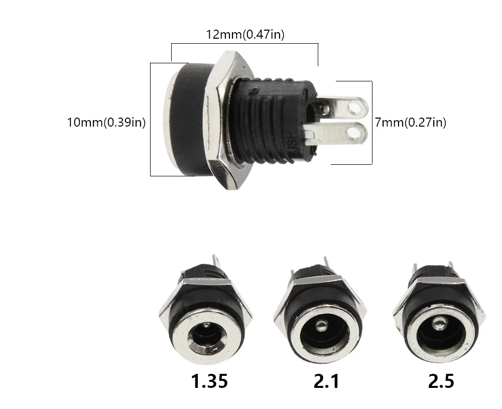 - Available in multiple sizes including 3.5×1.35mm, 5.5×2.1mm, and 5.5×2.5mm, accommodating diverse power interface requirements across various devices.