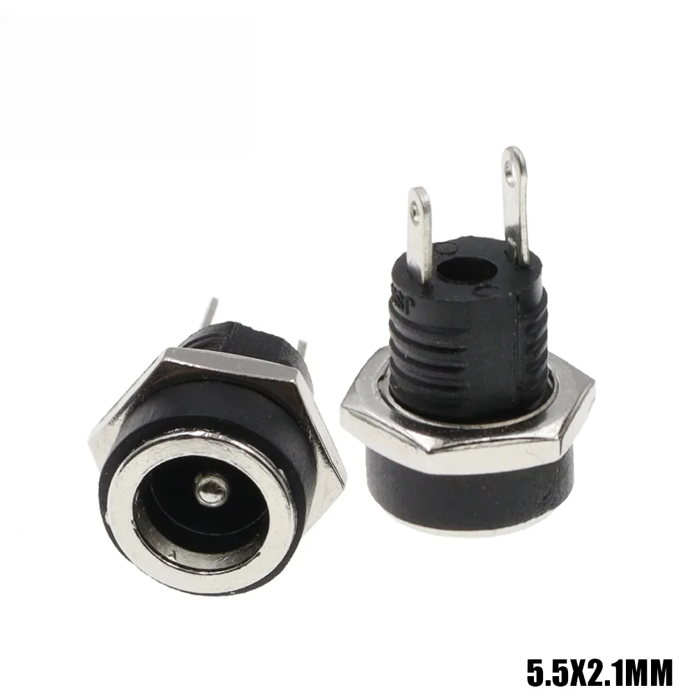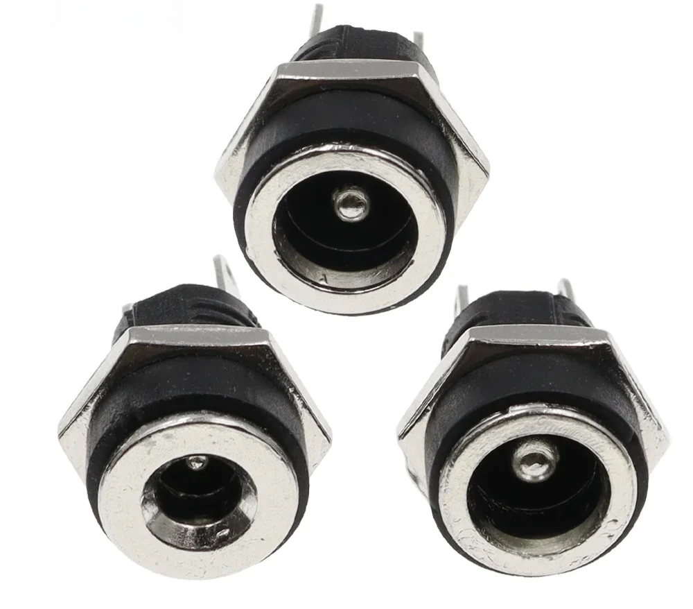 Experience seamless power connections with this set of 10 high-quality DC-022B connectors, specially designed for motherboard mounting applications. Crafted with a sleek black cylindrical plastic body featuring a textured ribbed grip for easy handling, these connectors combine functionality with durability. The silver-colored hexagonal flange ensures secure mounting, while the metallic prongs provide a solid electrical interface. Each connector is equipped with a small rubber or plastic ring at the bottom for insulation and sealing, enhancing safety and longevity. Ideal for routers and power adapters, these connectors support 12V and 3A voltage ratings, with multiple sizes including 3.5×1.35mm, 5.5×2.1mm, and 5.5×2.5mm, making them versatile for various electronic applications. Trust this reliable component to ensure your devices operate smoothly and securely.