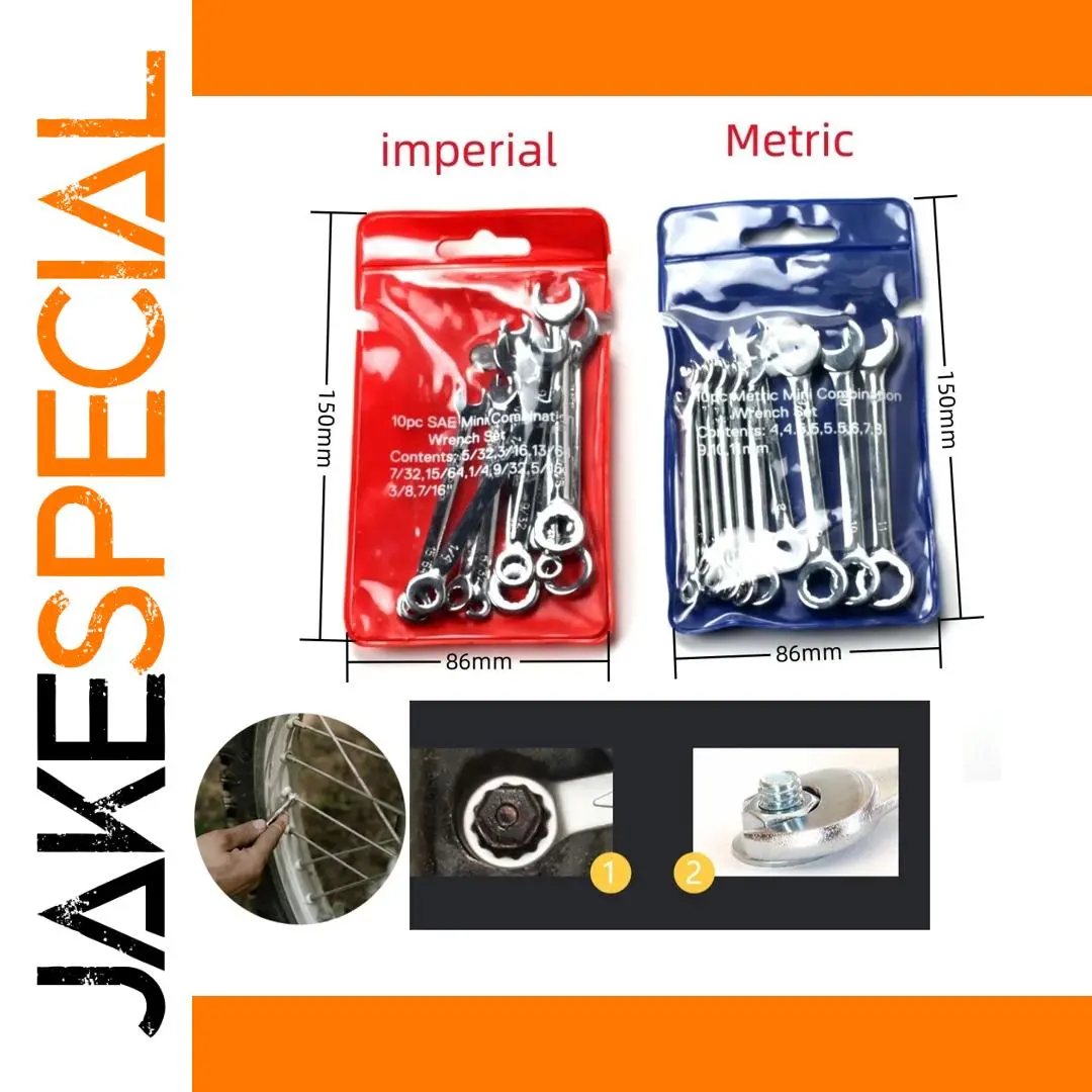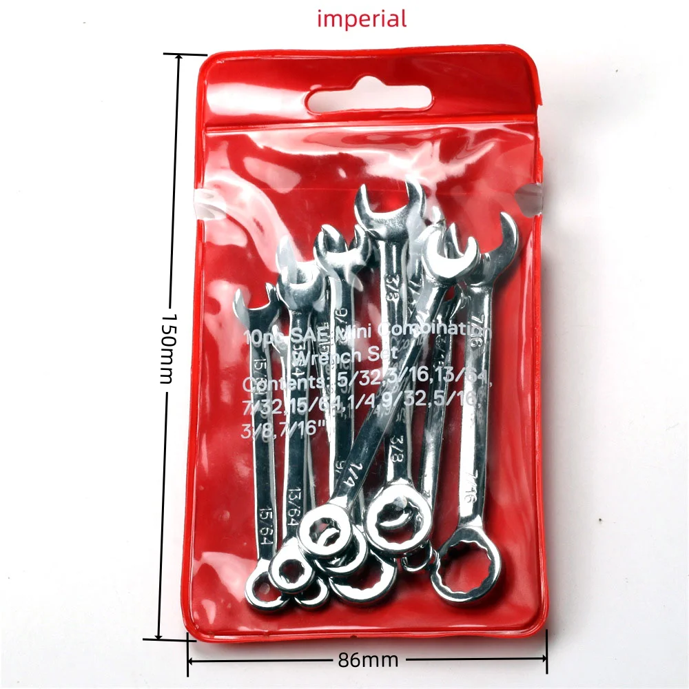 Experience the convenience of this premium set of 10 mini spanner wrenches, crafted from durable chromium-vanadium steel with a polished chrome finish that reflects light beautifully. Designed for precision and ease, each wrench features a double-ended, open-jaw design measuring 150 mm in length, with an open capacity of 11 mm, making it perfect for tight spaces and detailed maintenance tasks. The bold red and blue packaging highlights the British and Metric types, respectively, allowing easy identification. Their explosion-proof construction ensures maximum safety during heavy-duty use. Compact and portable, these wrenches are ideal for a wide range of tasks including electrical, automotive, mechanical, plumbing, and home repairs. They combine functionality with durability for your convenience.