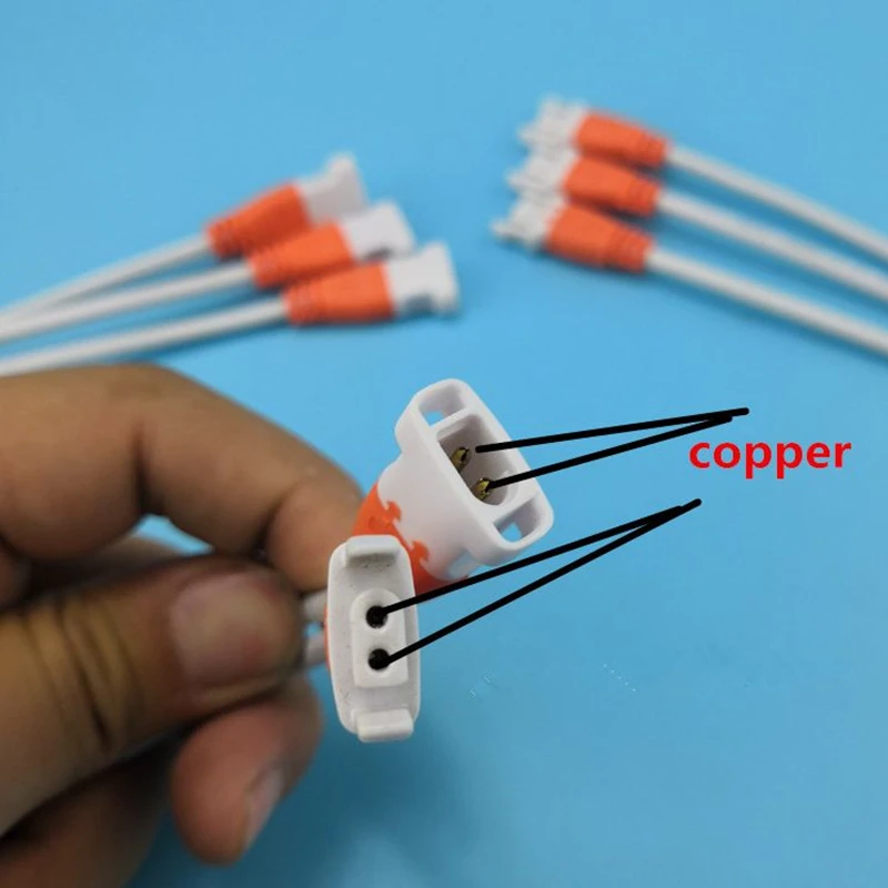 Enhance your DC wiring setup with this set of 10 power supply connectors, featuring five male and five female plug terminal wire connectors, each with 15cm-long cables totaling 30cm. Designed for bus connections and LED applications, these high-quality DC connectors include insulated orange strain relief boots with ribbed grips for secure handling. The male connectors feature a rectangular, slightly rounded housing with a protruding metal pin, while the female sockets securely connect with multiple internal contacts. Clear polarity distinction is crucial to avoid circuit damage, making these connectors ideal for safe, reliable power supply and LED wiring projects.
