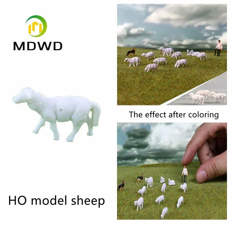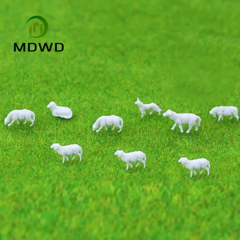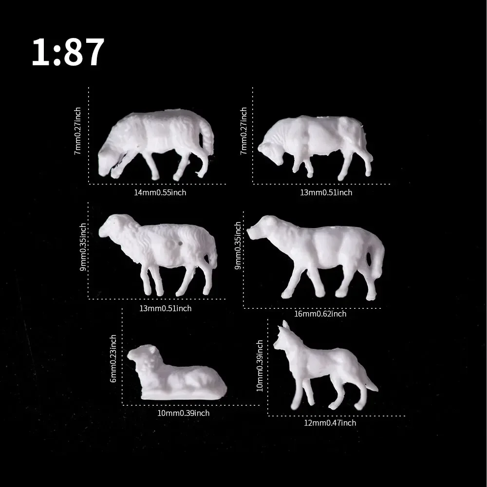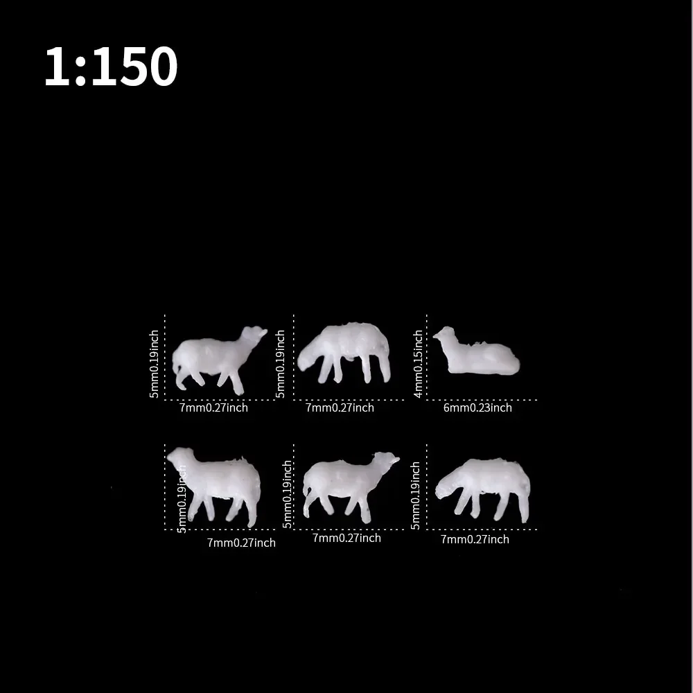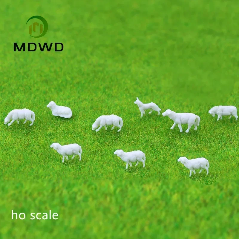 Enhance your diorama or railway landscape with this set of 10 realistic white plastic sheep figures, compatible with HO (1:87) and N (1:150) scales. Each figure measures approximately 1 cm in length for HO scale and 0.4 cm in N scale, featuring textured woolly coats and natural poses to add life and authenticity to your scene. These versatile, paintable, and reusable figures are ideal for architectural models, farm scenes, and outdoor displays, designed for enthusiasts aged 14 and older. Crafted for durability and detailed craftsmanship, they bring a charming pastoral touch to any miniature landscape.