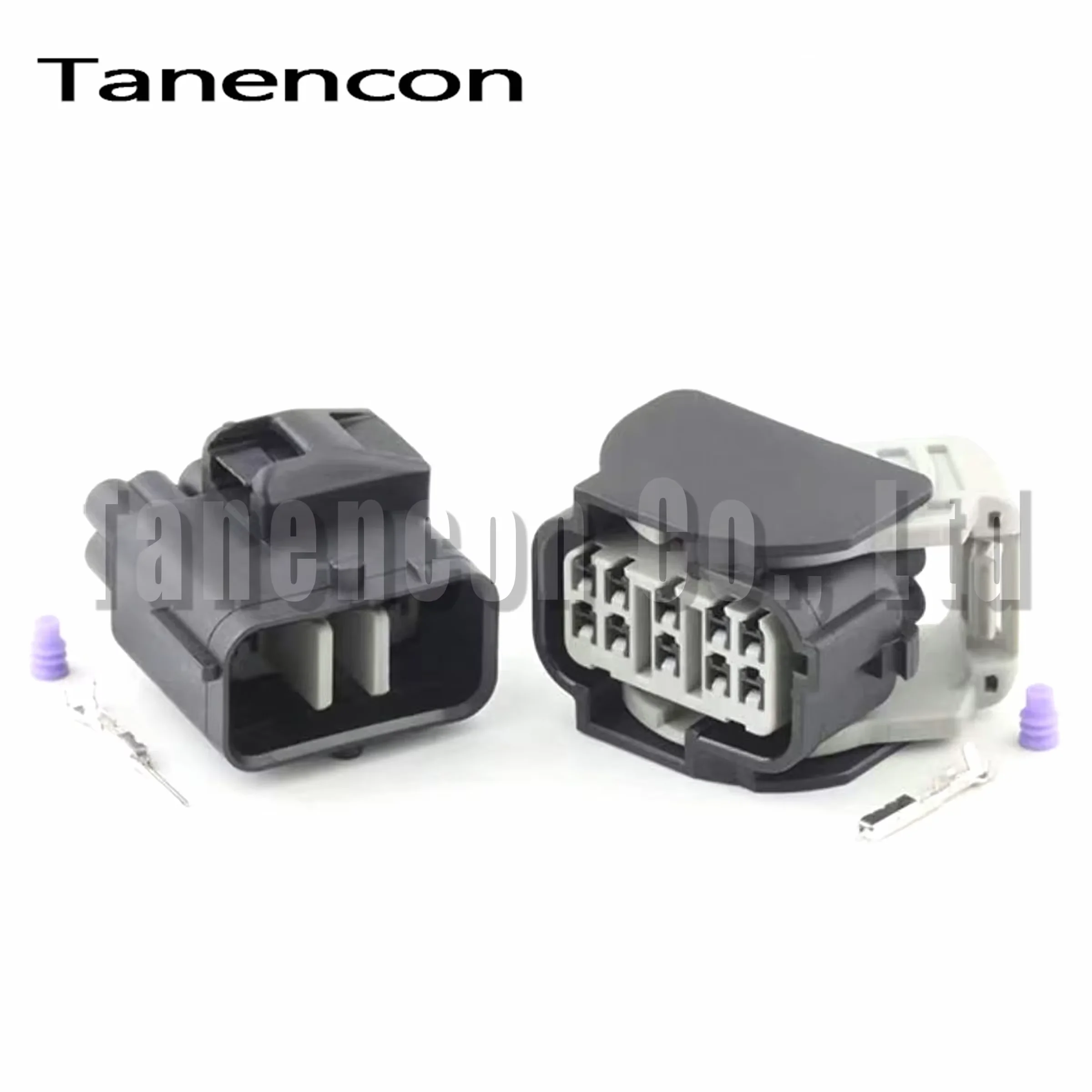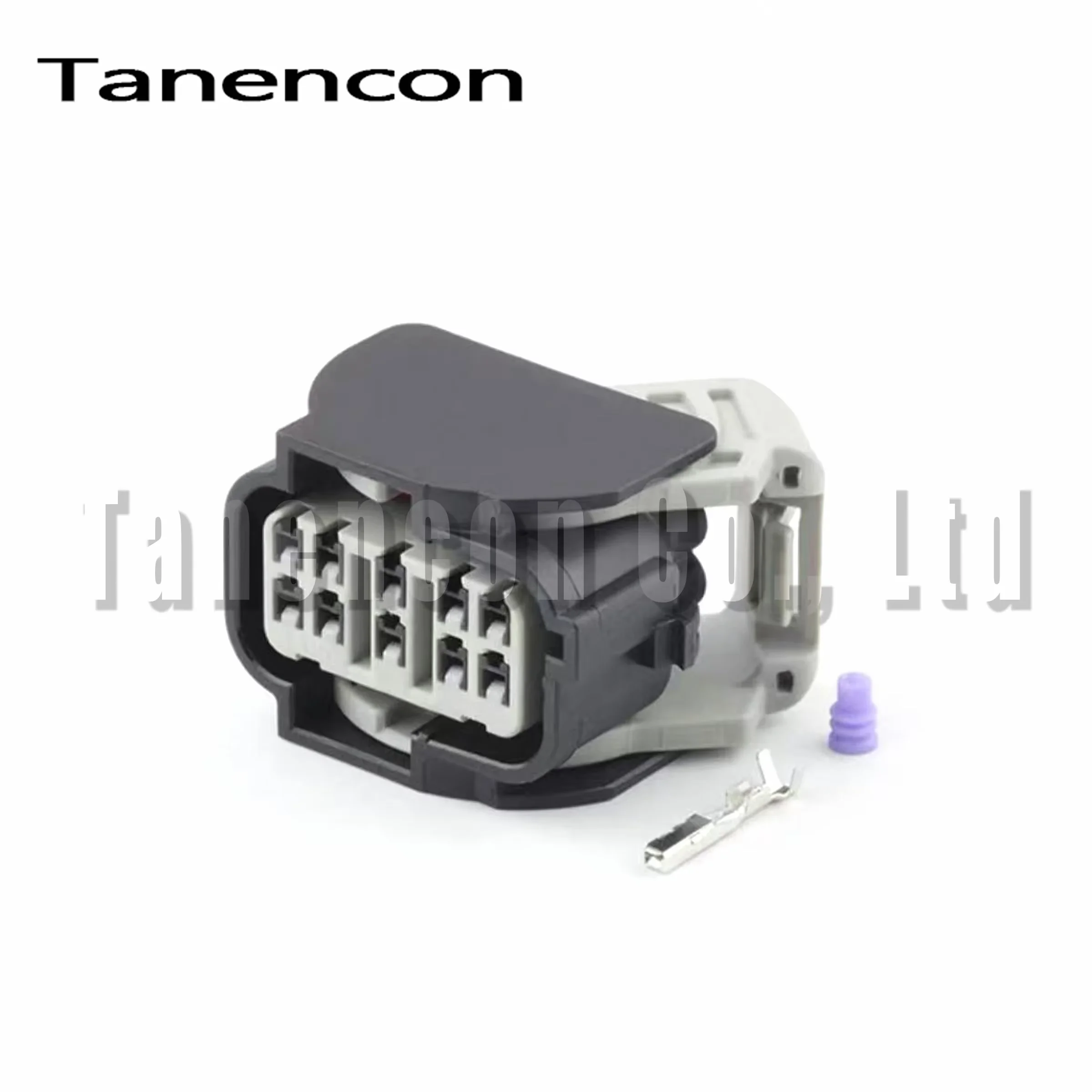 This 10-pin waterproof wire connector set is specifically designed for automotive applications, particularly for Honda models. Featuring both male and female plugs, this reliable connector ensures secure connectivity in any automotive gearbox scenario. The connectors are available in single sets or in enhanced packs of five, accommodating various project requirements. Made from durable plastic and designed with waterproof capabilities, the connectors are equipped with corresponding terminals. The sleek light grey housing, coupled with a dark grey cover and a unique purple terminal element, enhances both function and aesthetics. Enjoy peace of mind knowing your automotive connections will stand the test of time.