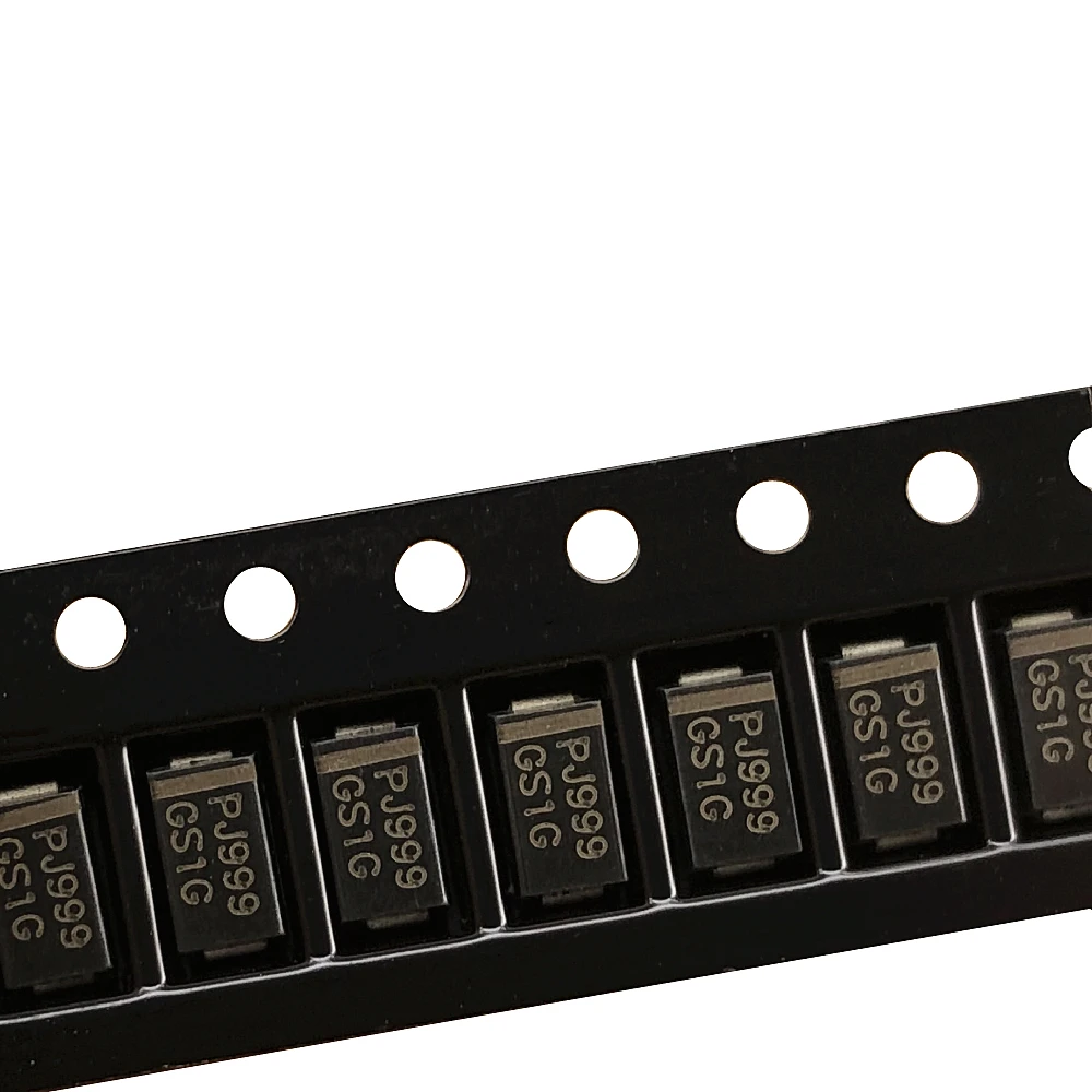 - The diodes are bipolar junction transistors capable of handling 1A current, with voltage ratings GS1D-200V, GS1G-400V, GS1J-600V, and GS1M-1000V, supporting various voltage requirements.