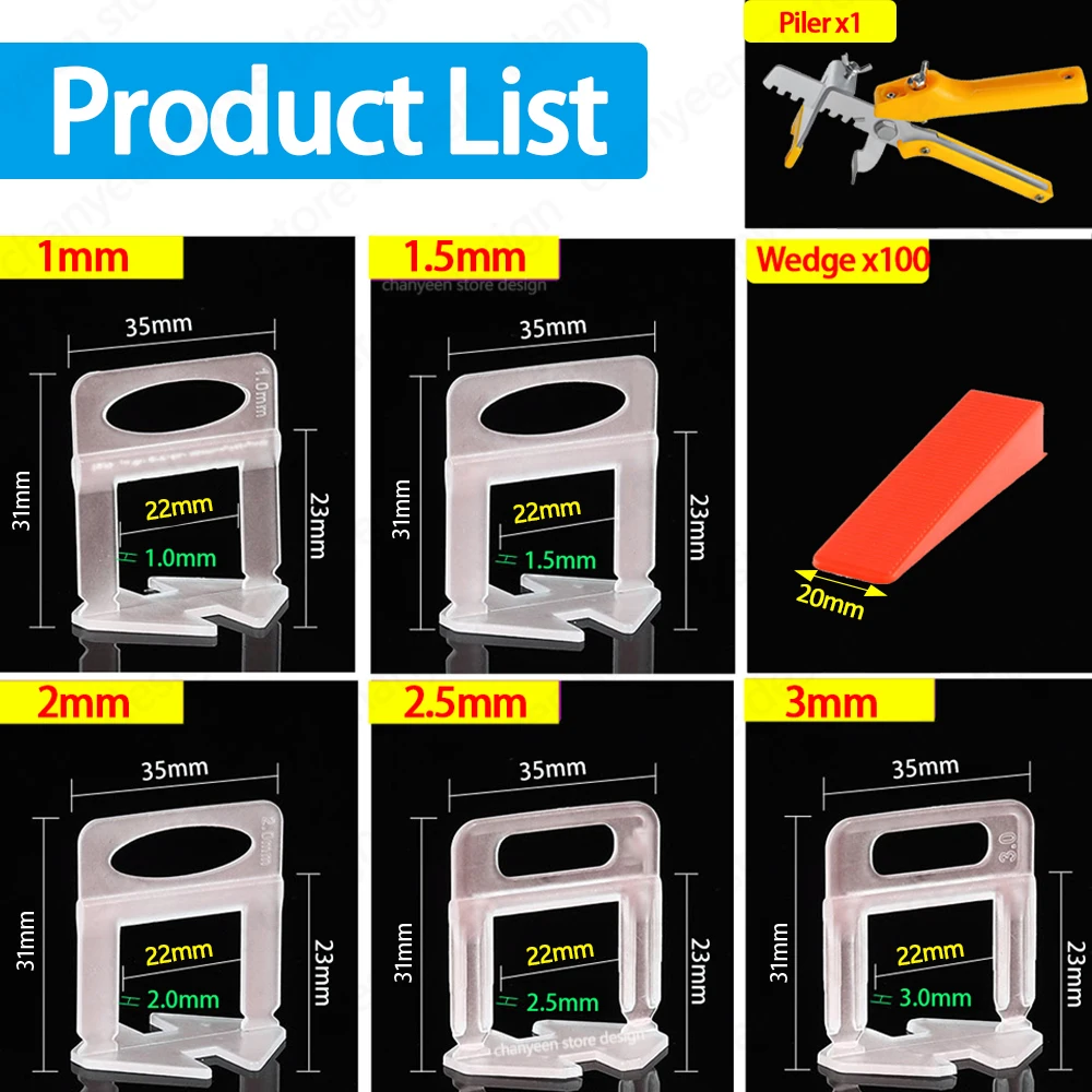 1000pcs Tile Leveling System Spacers and Clips Kit